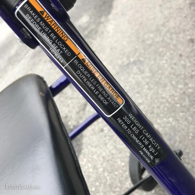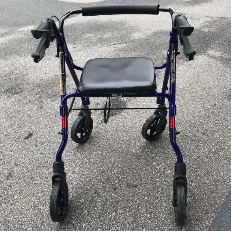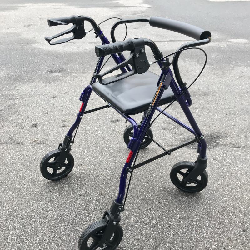 This walker by Incacare is great for balance and resting when tired. Folds for easy storage and transport. No shipping. Local pick up only in Asheville, NC.