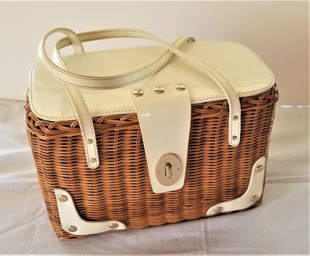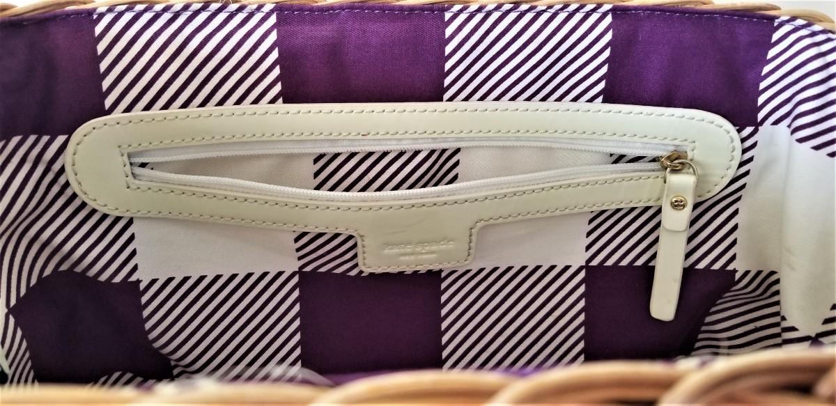 Only gently used - KATE SPADE basket purse, Ivory colored accents, 7.5" tall (not including strap), 11.5" across, 5.5" deep. SO CUTE!