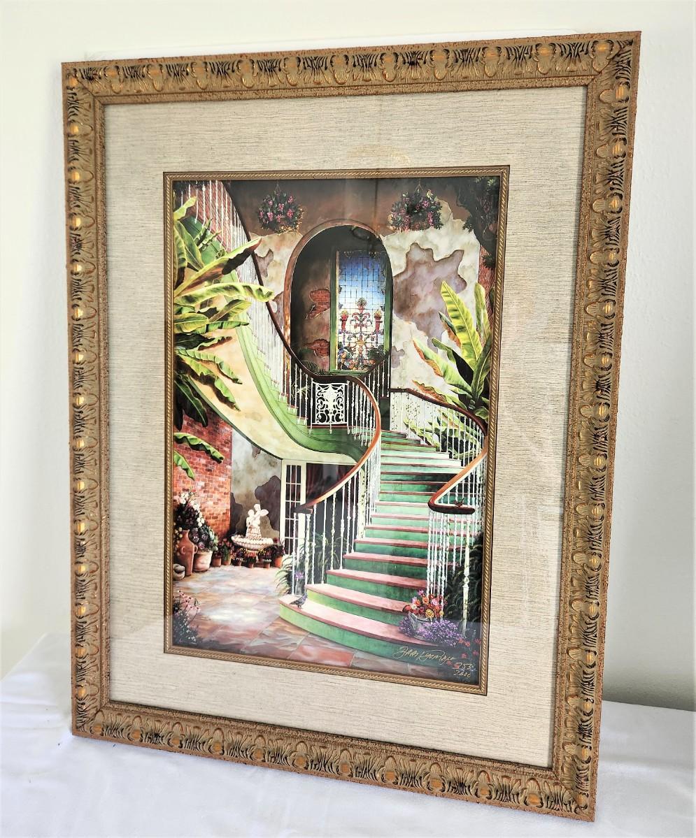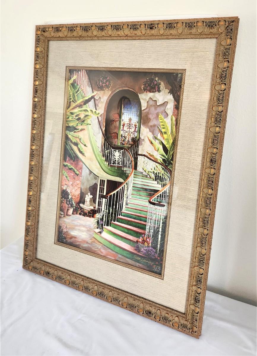 Here is the mate to Lot #59 - Large (29" x 30") beautifully framed Brad Thompson signed/numbered 753/2000 limited edition print. This was purchased at a gallery some years ago and had a retail value then of about $250.00. No reserve. Excellent condition. Iconic French Quarter patio scene.