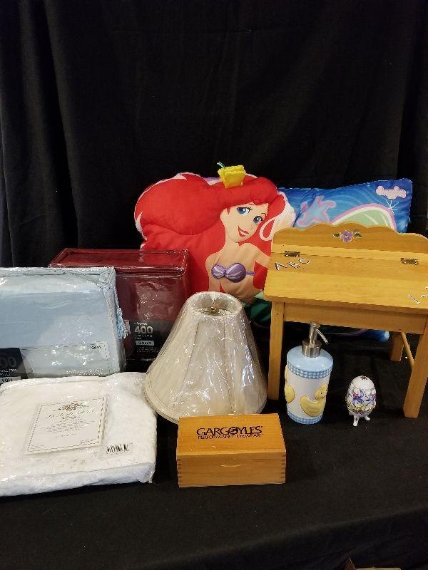 NIP 400 Count At Home Full and Queen Sheet Sets, La Rochelle Collection 'Sussex Park' King Size Sham, Mermaid Pillow, Wood Desk and more!