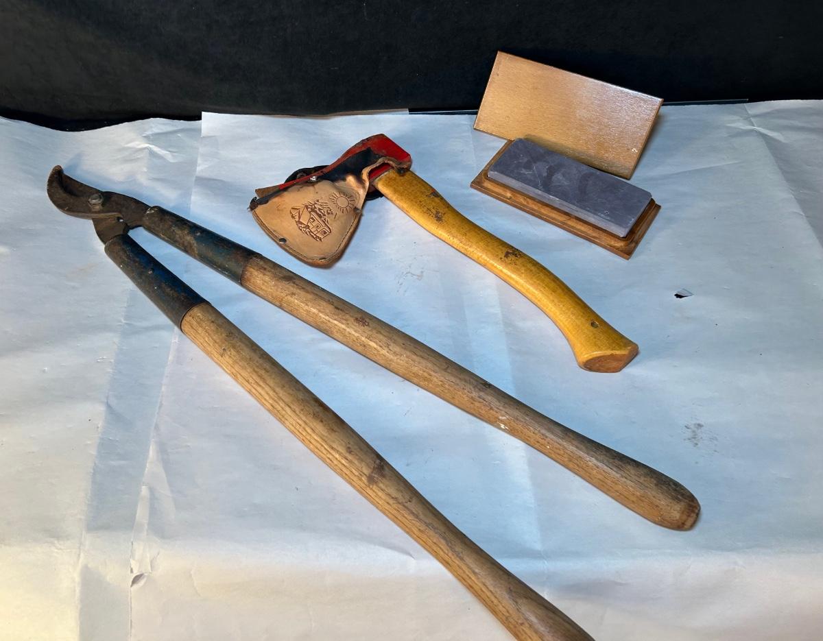 Lot 67. Long-handle Cutter, Axe and Sharpening Stone