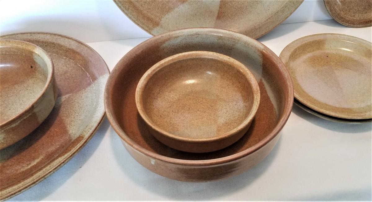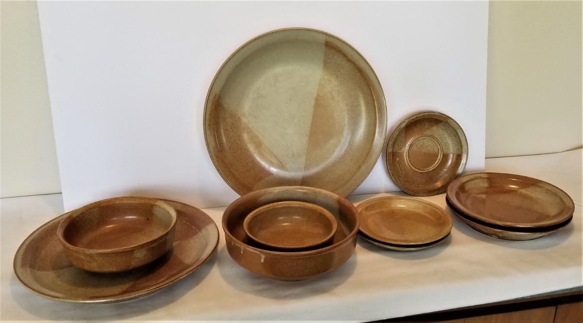 Nice lot of vintage Iron Mountain Stoneware (mark on reverse) in the "White Top" pattern. Good ebay lot for resellers - you get all you see here - platter, plate, 2 bowls, serving bowl, 2 salad plates, 2 bread/butter plates, 1 cup saucer plate. All in good condition.