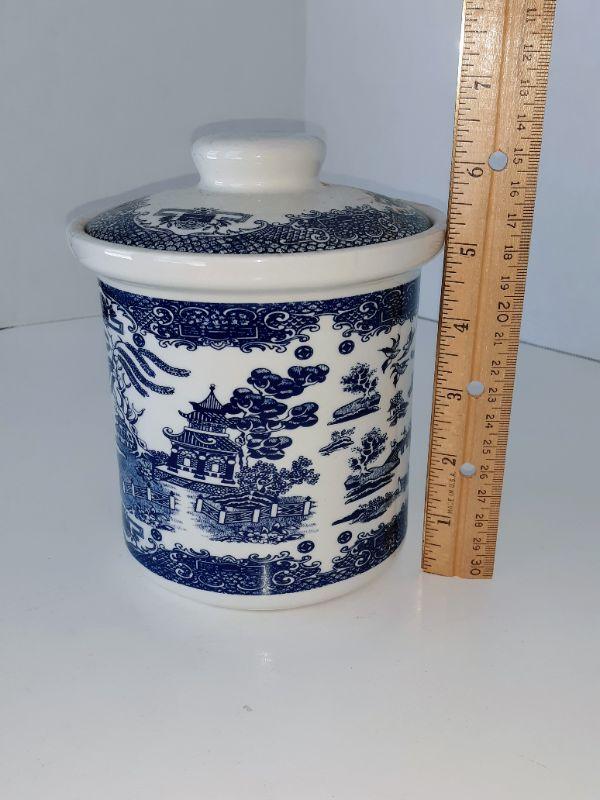 Bluw Willow China Pitcher, Jars and Salad bowl with utensils. Please see all pictures for content of the lot, condition of the lot, and measurements if taken. Pictures are the best representation of the items listed and items are untested unless indicated in description. Thank you for looking and have fun bidding!