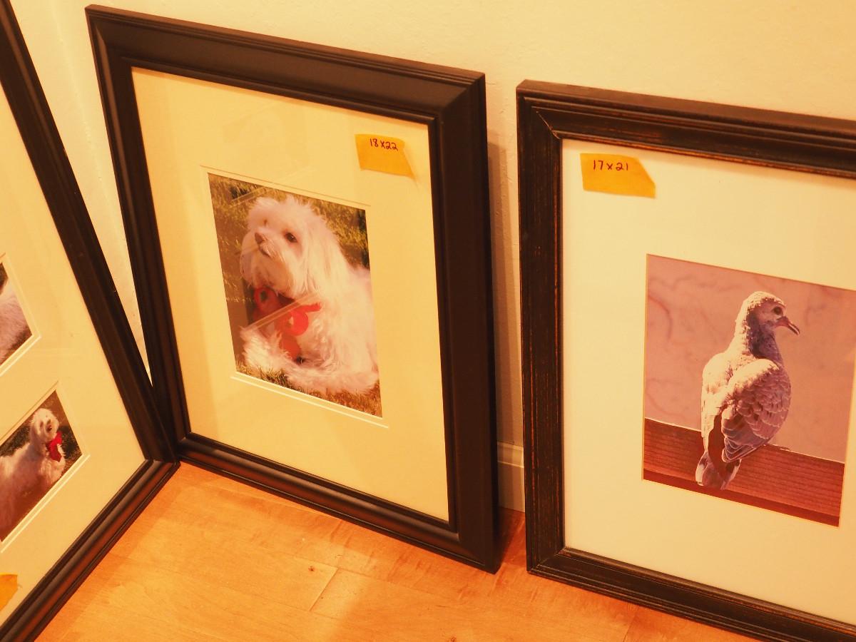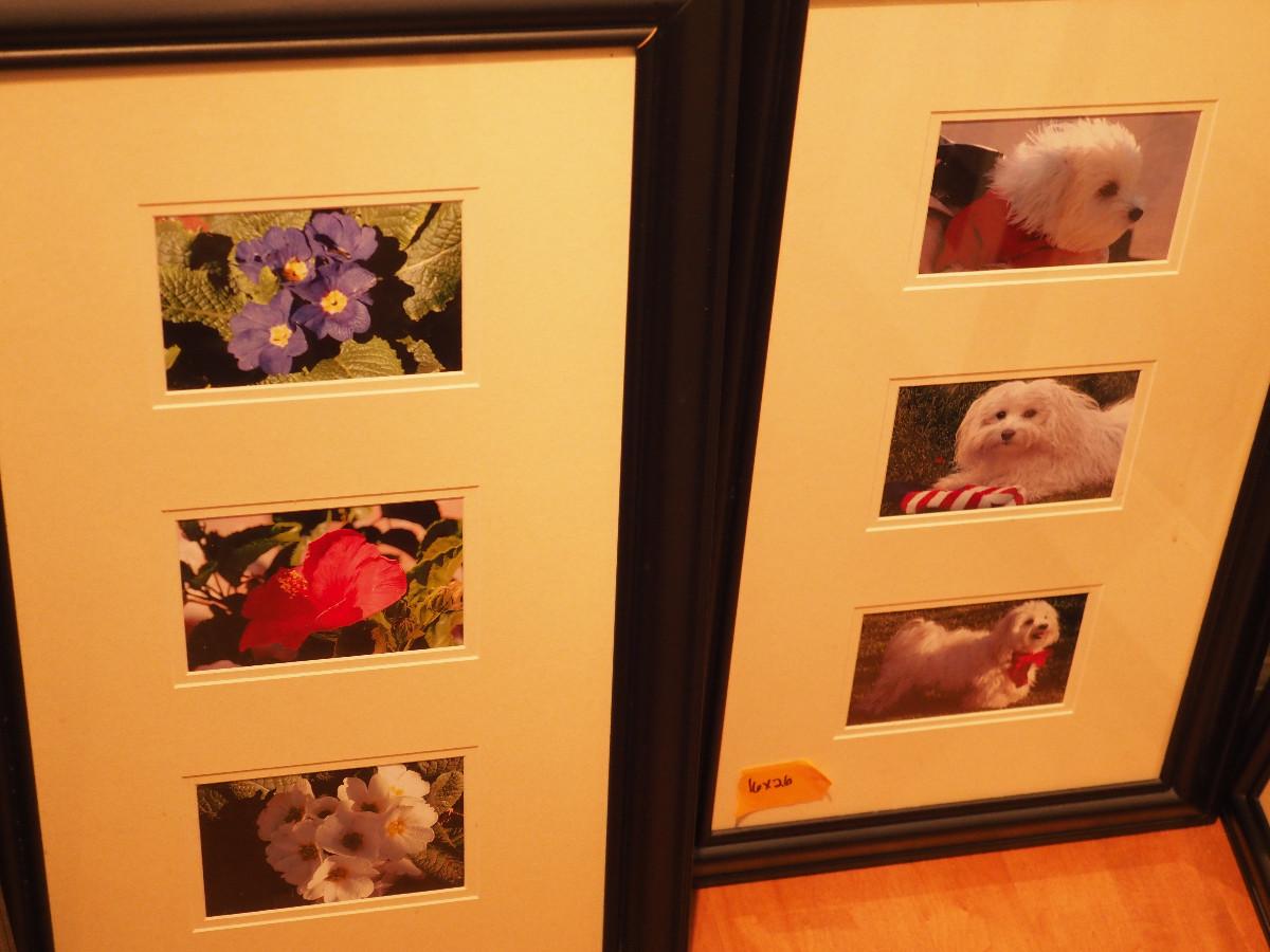 Maltese dog, and nature framed photos 18x22 (3) and 16x26 (2)