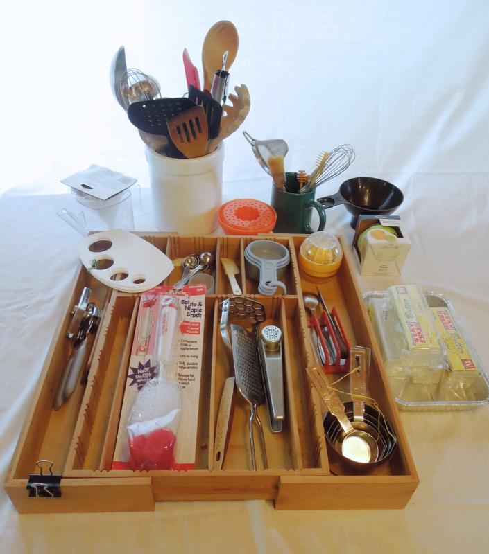 Lot 67: Mega Lot of Kitchen Tools, Gadgets and Sectional Storage Divider