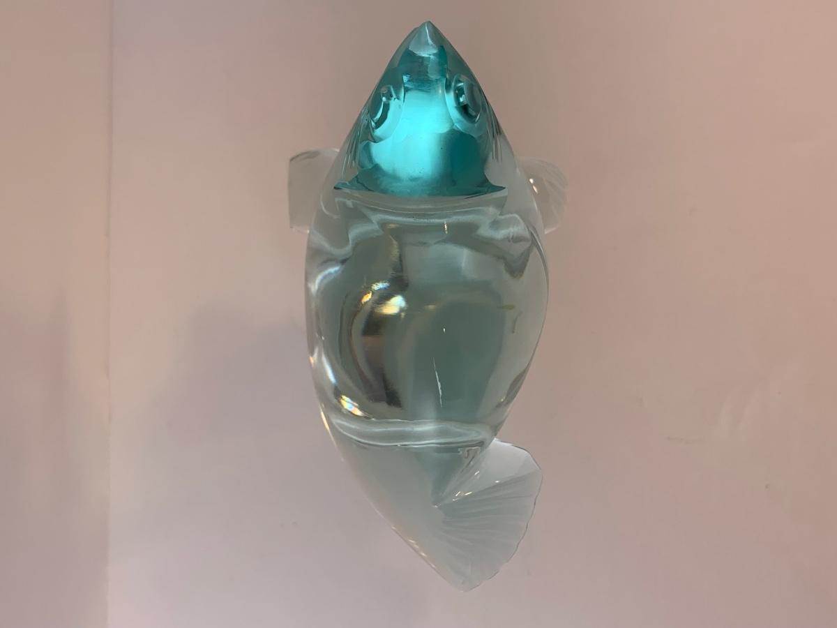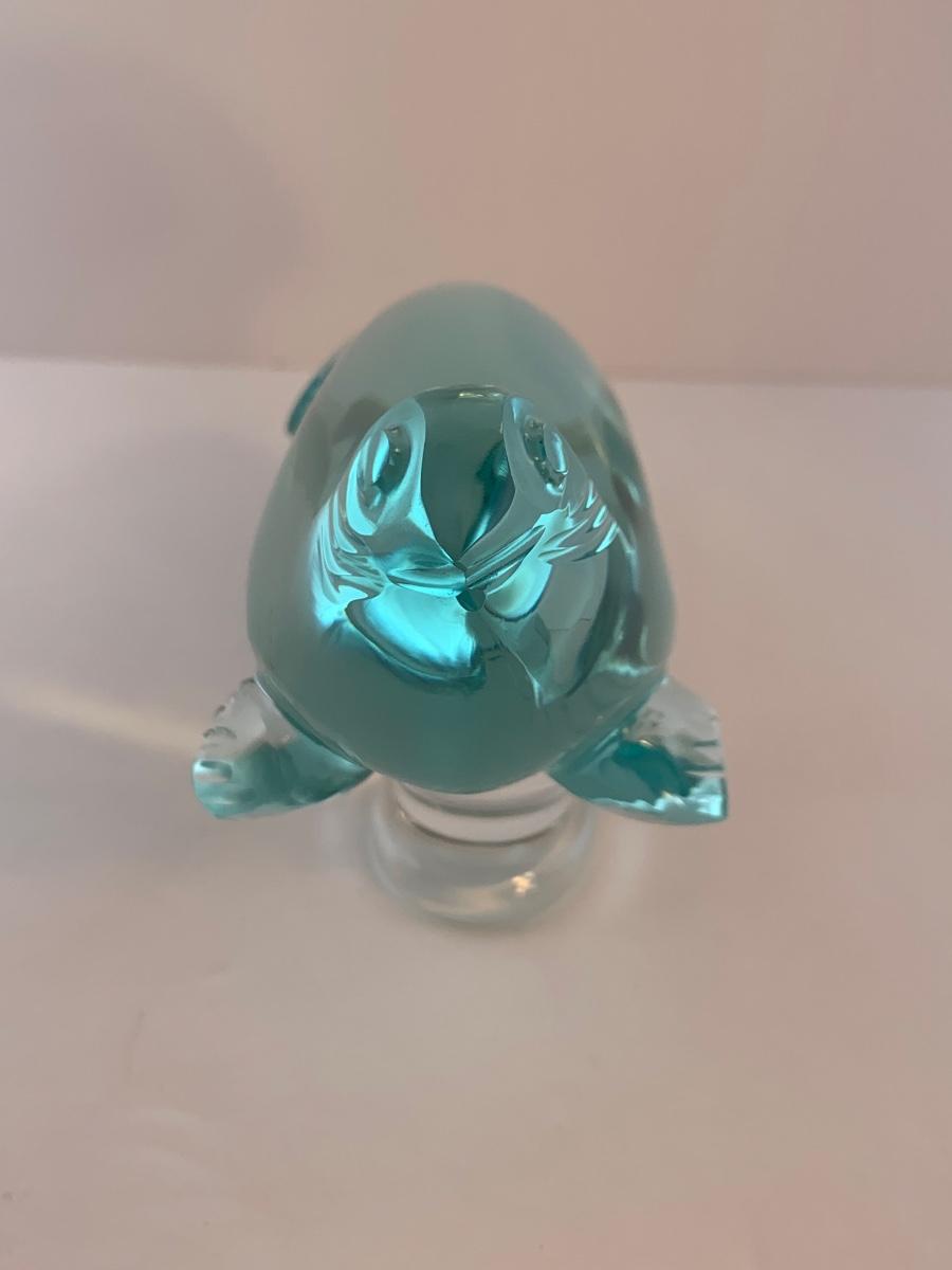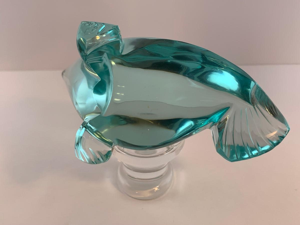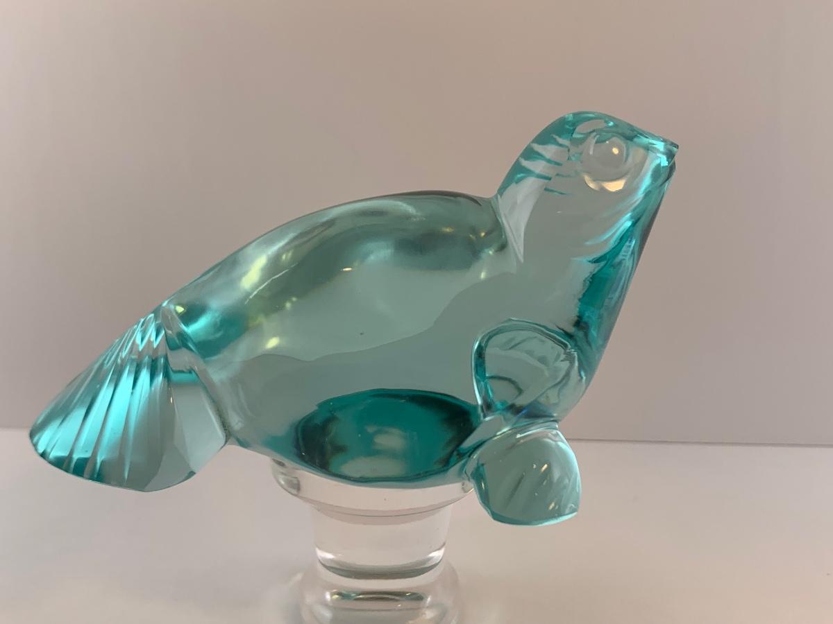 Pale turquoise translucent sea lion/seal figurine, bottom not marked, 4" x 2"