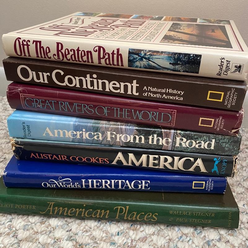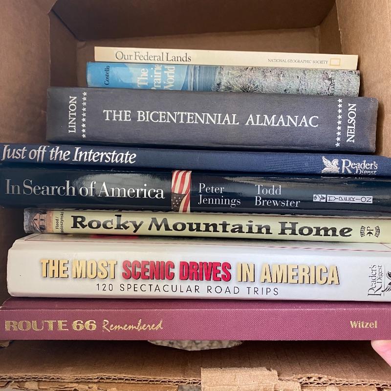 Oh to travel!! These books, framed photograph and metal Route 66 picture can take you there! This lot contains a wide variety of American destinations! From our National Parks, Route 66, the Grand Canyon to Chicago, you can be well traveled in your book destinations! The books are mostly hardback, with a few paperbacks. See pictures for details of titles. The wooden framed picture (approximately 14x10 inches) is a photograph of picturesque Colorado! Finally, to complete this lot is a metal picture that says "America's Highway" of the famous Route 66. Bookshelf not included. Local pick up only.