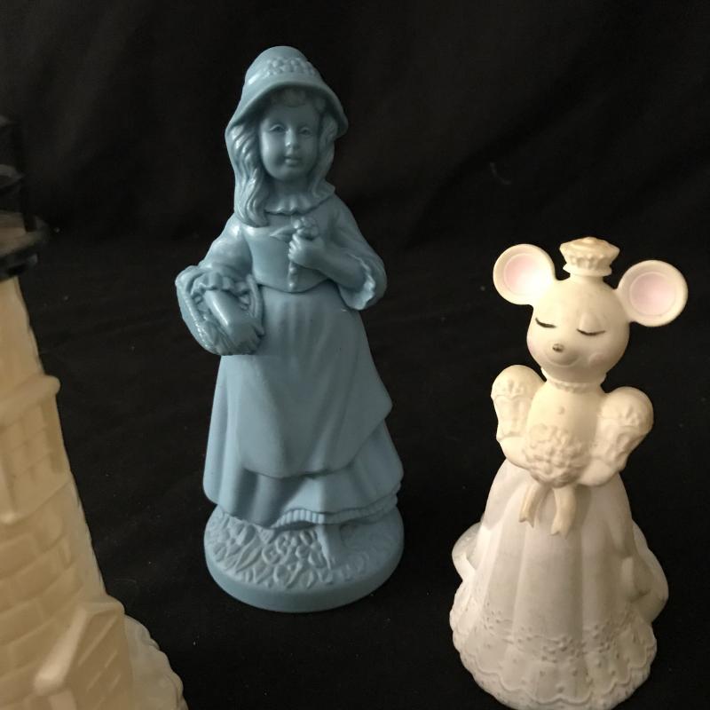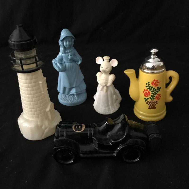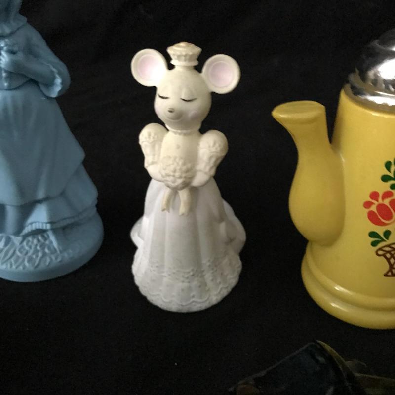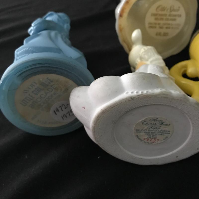 Great collection of vintage Avon and Old Spice containers. Includes Little Girl Blue and Church Mouse Bride. No Shipping. Local pick up in Maggie Valley.