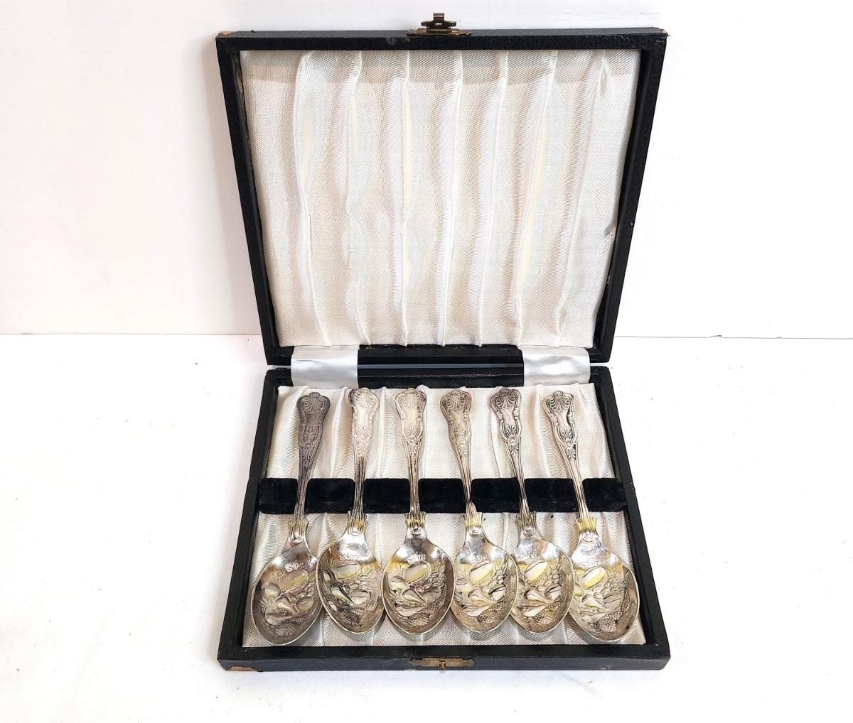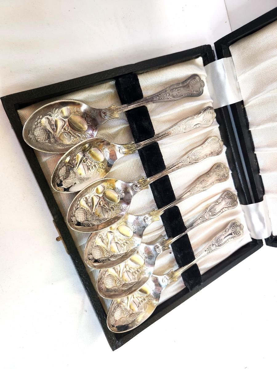 Vintage English Sheffield berry spoon set in original box - you get six spoons - good condition.