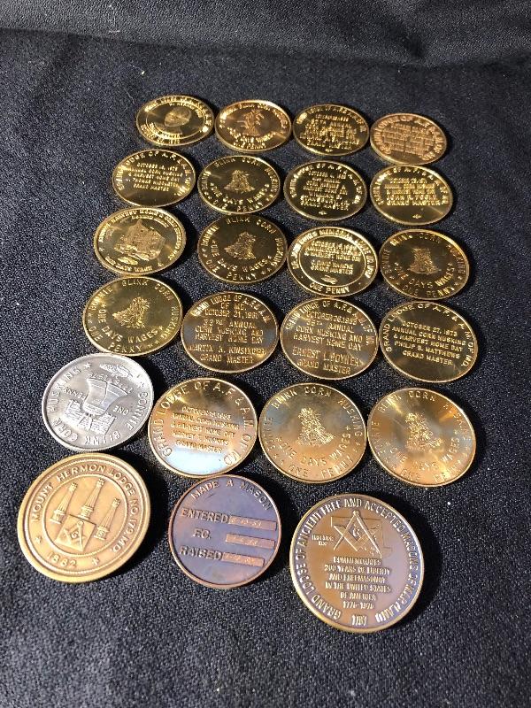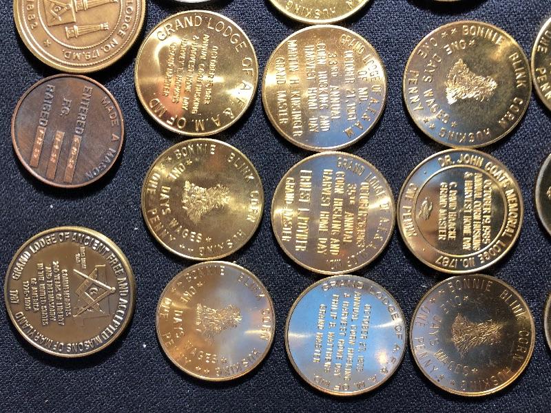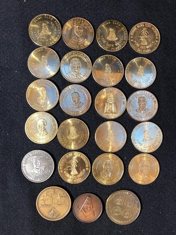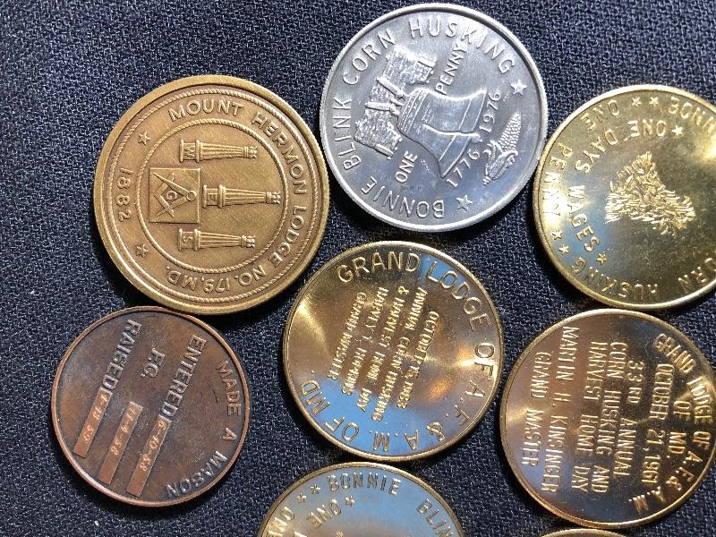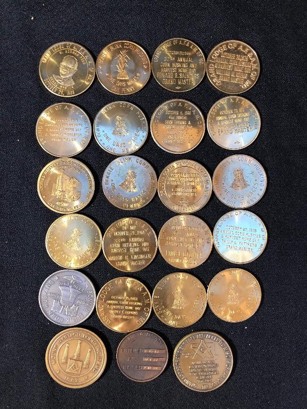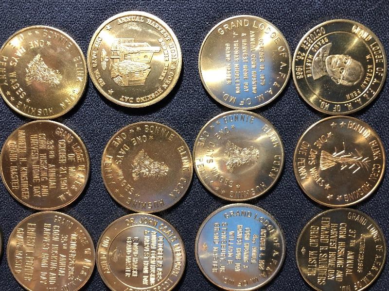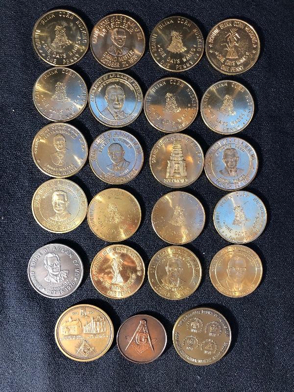 Lot 67 - Wage Coins "One Days Pay" Bonnie Blink Corn Husking & Mason Coins