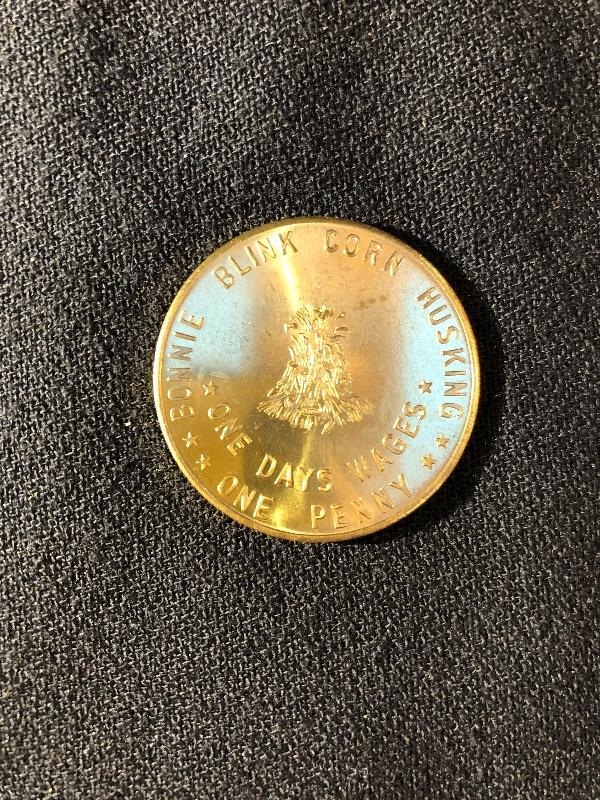 Wage Coins "One Days Pay" Bonnie Blink Corn Husking & Mason Coins