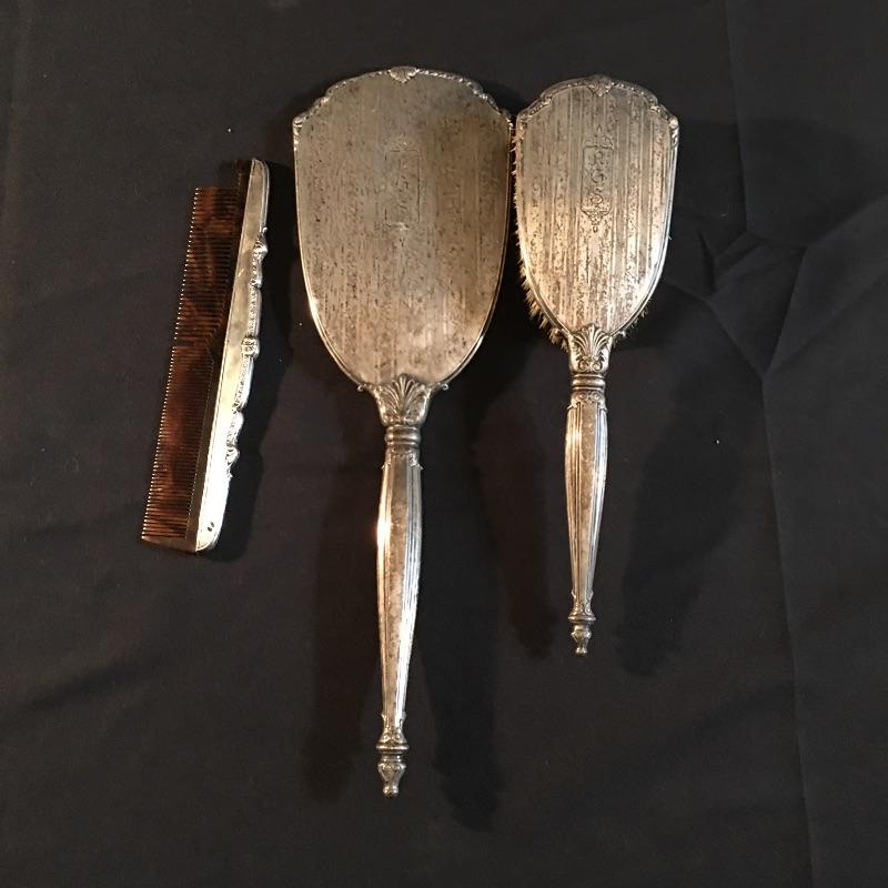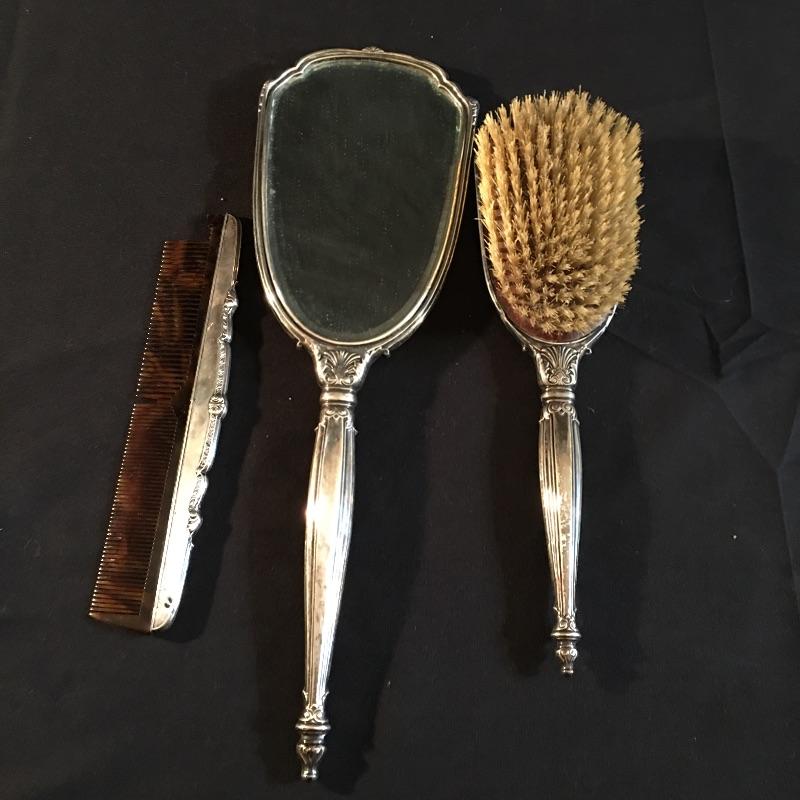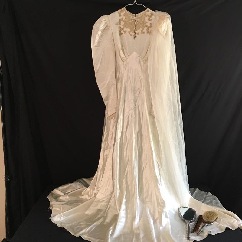 Lot 67 - Wedding Dress & Sterling Vanity Set