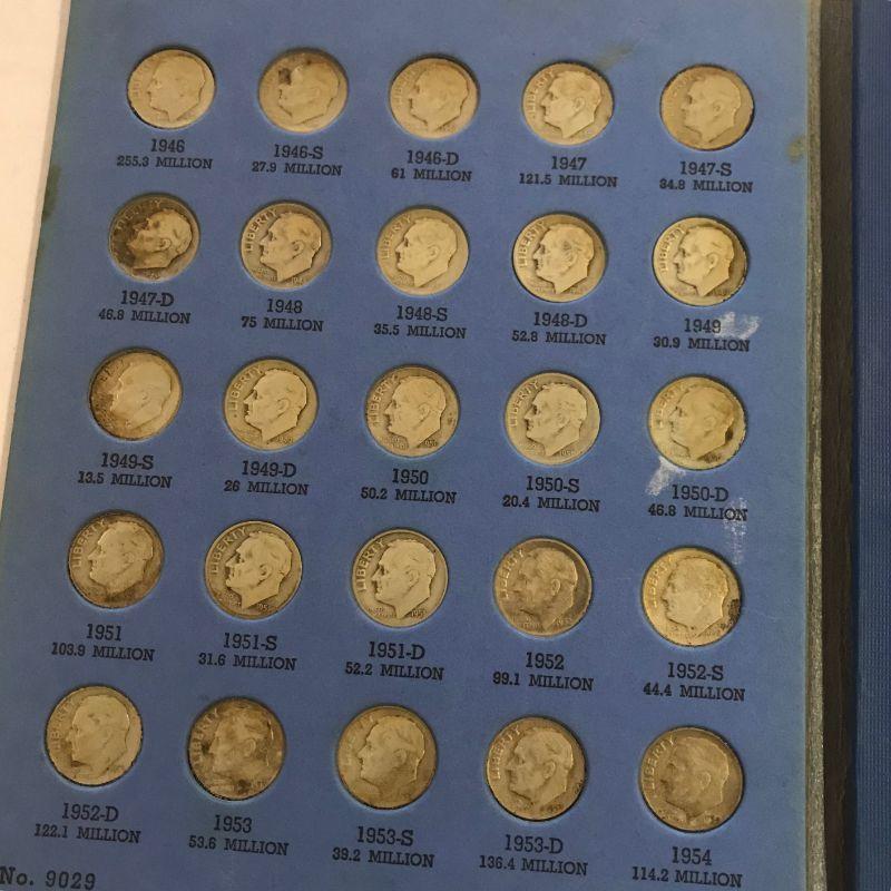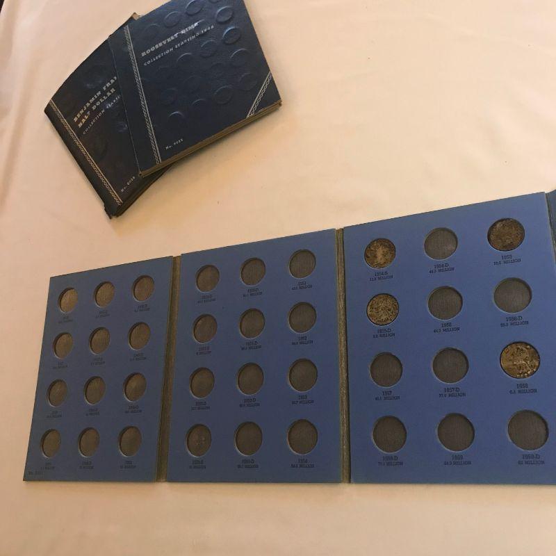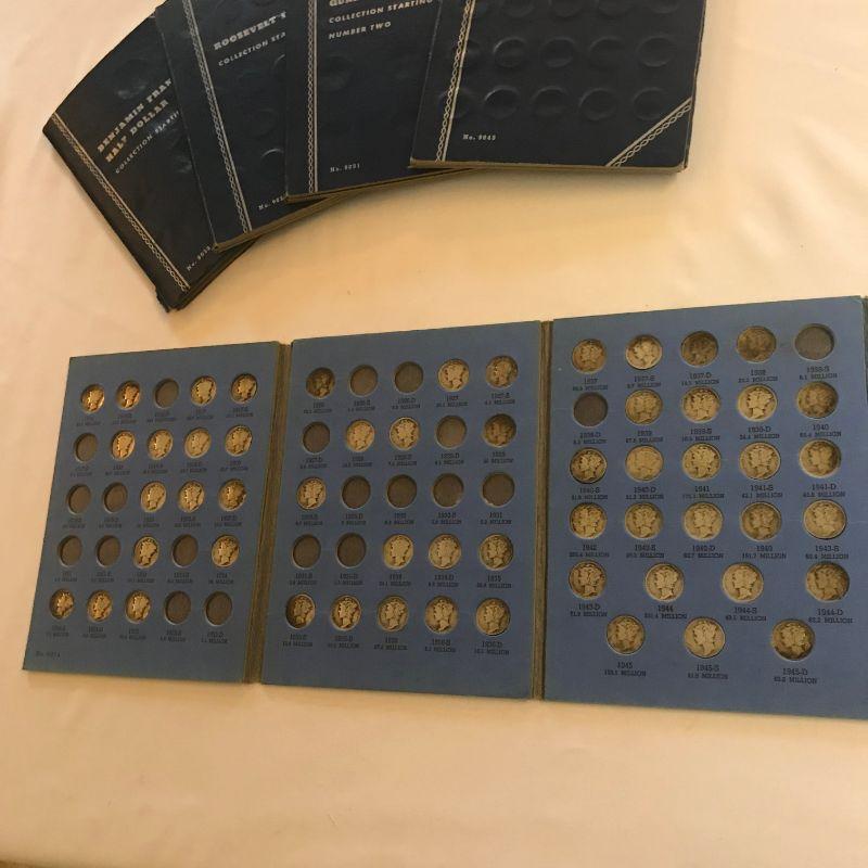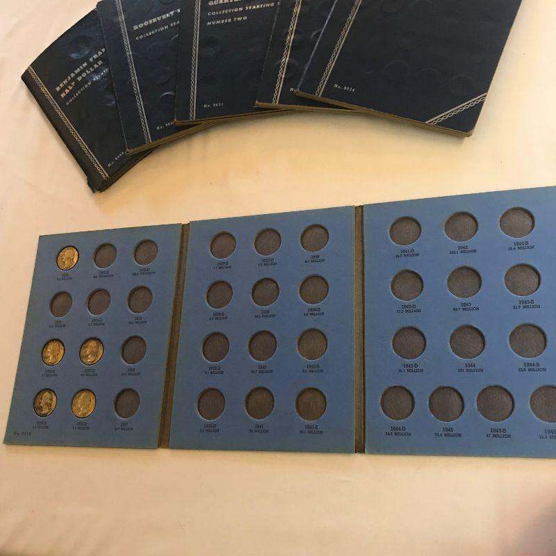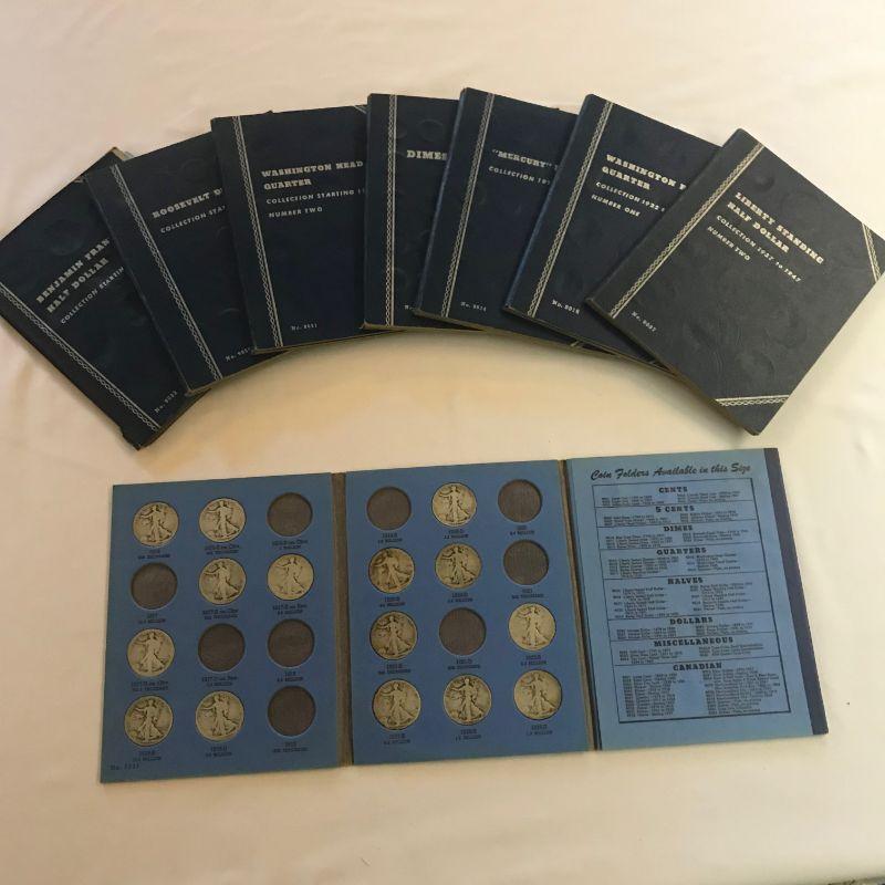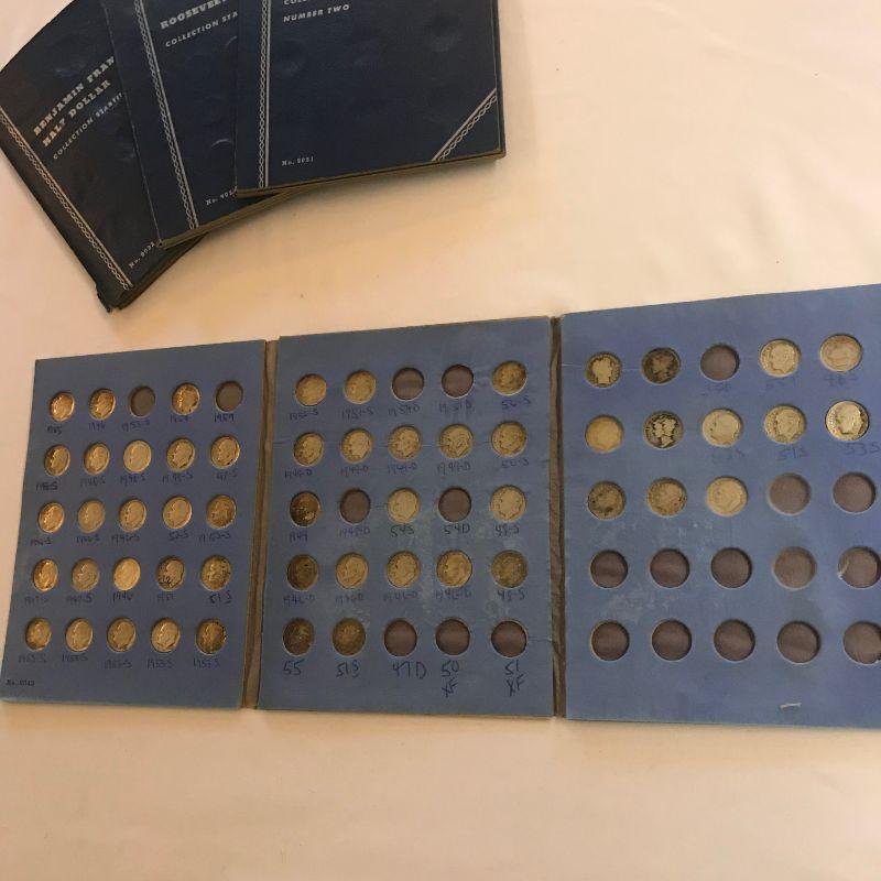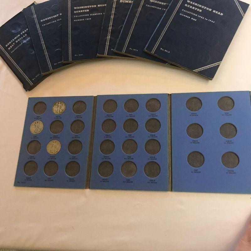 Whitman Folders includes partial sets of Quarter, Dimes and Half Dollars 90% silver. We can not guarantee that the coins are in the correct slots. Books themselves are in poor condition.