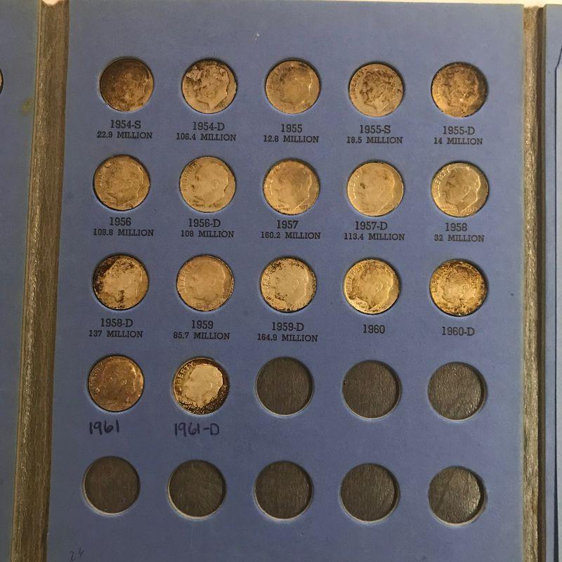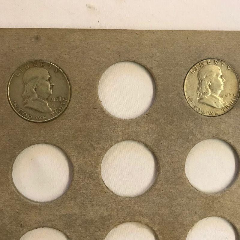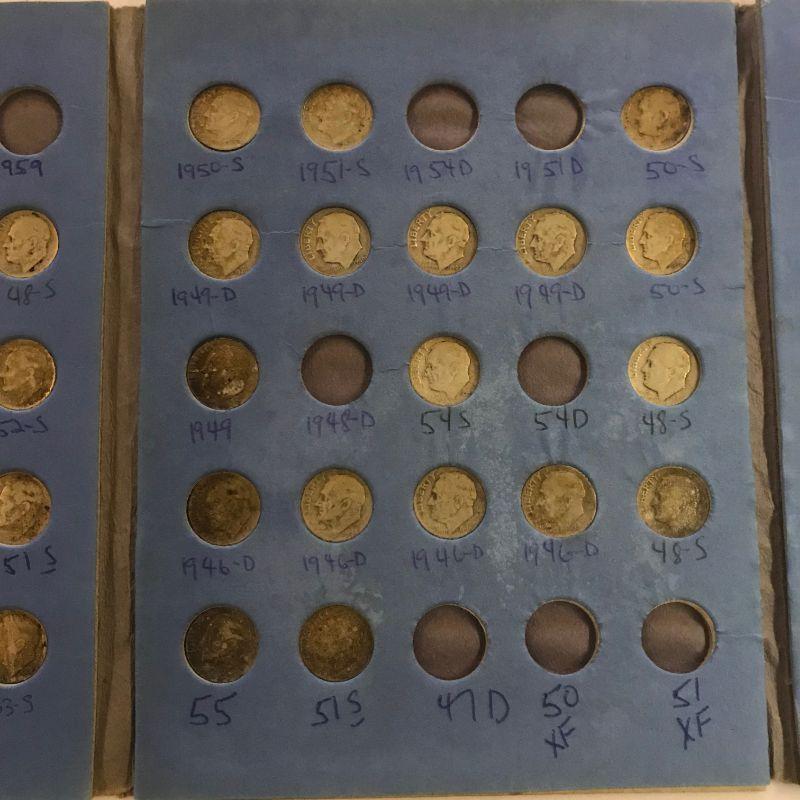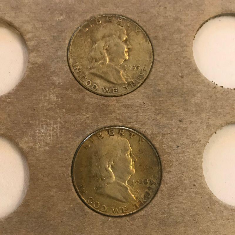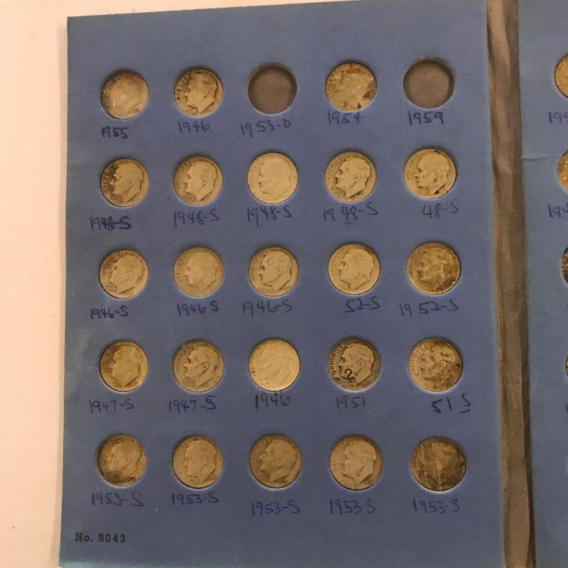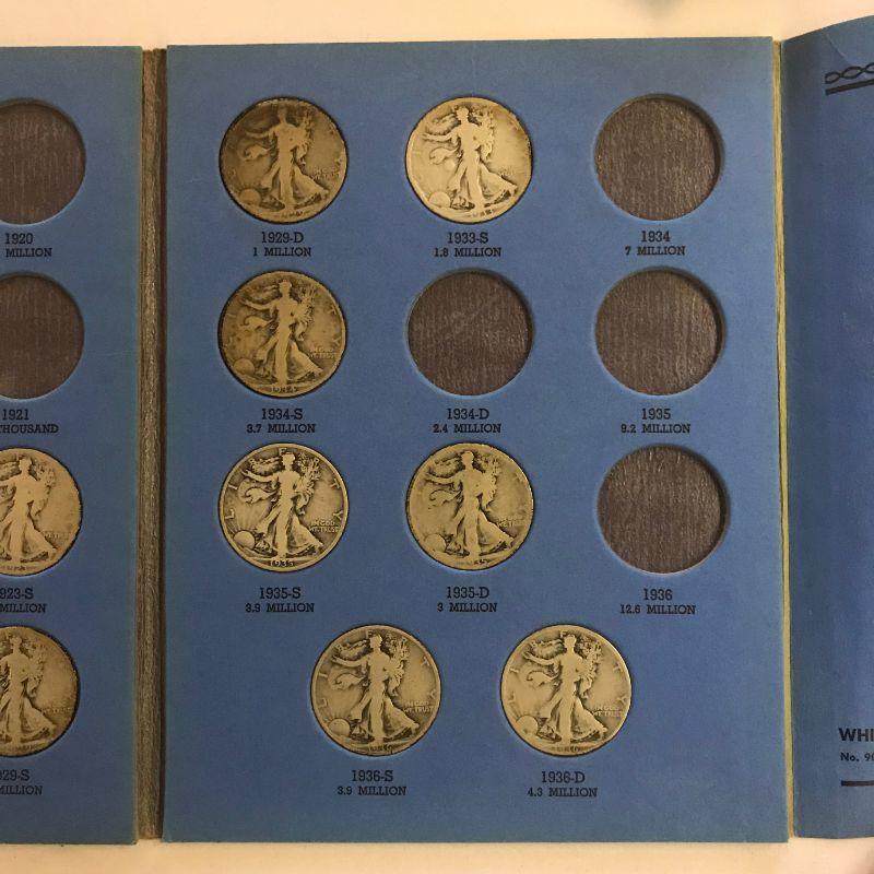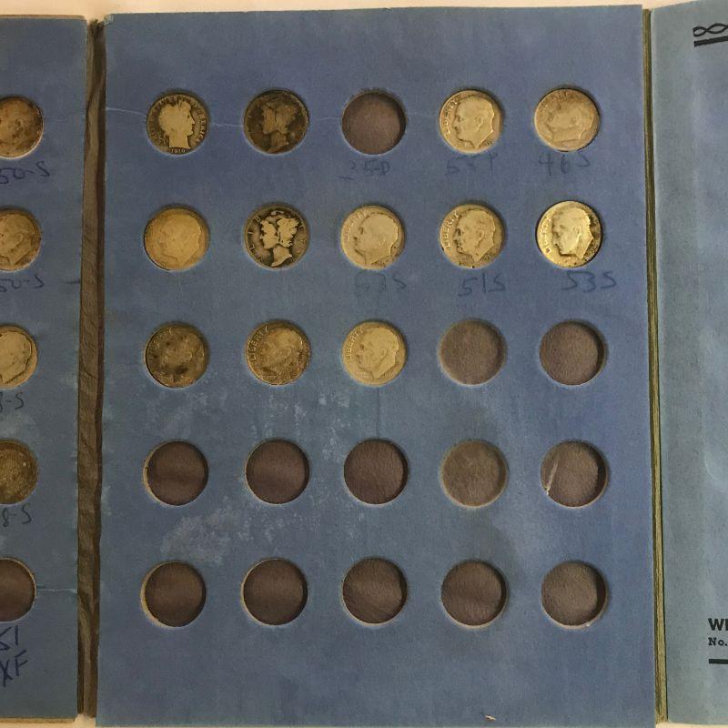 Whitman Folders includes partial sets of Quarter, Dimes and Half Dollars 90% silver. We can not guarantee that the coins are in the correct slots. Books themselves are in poor condition.