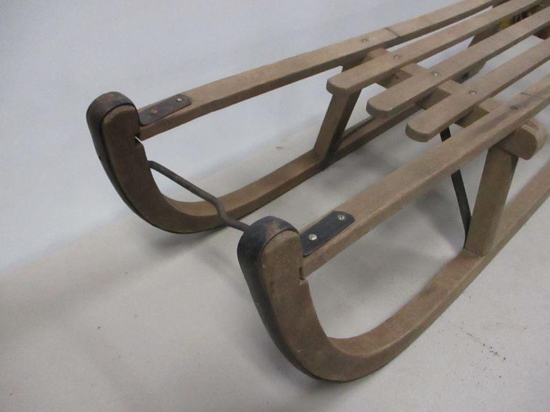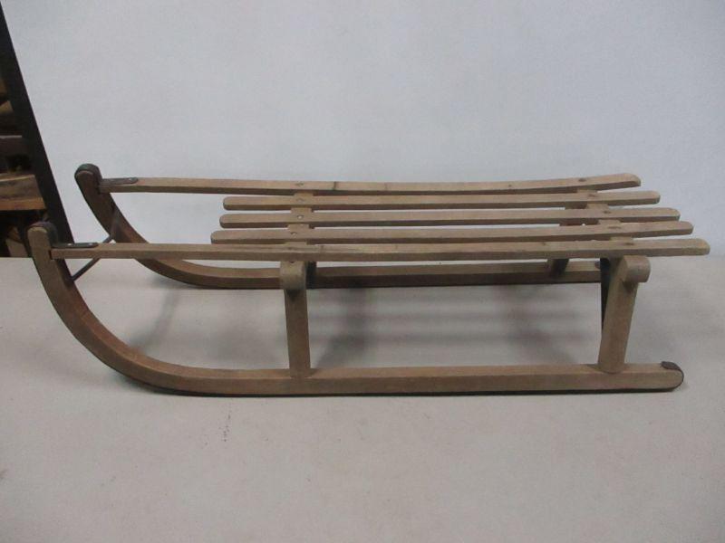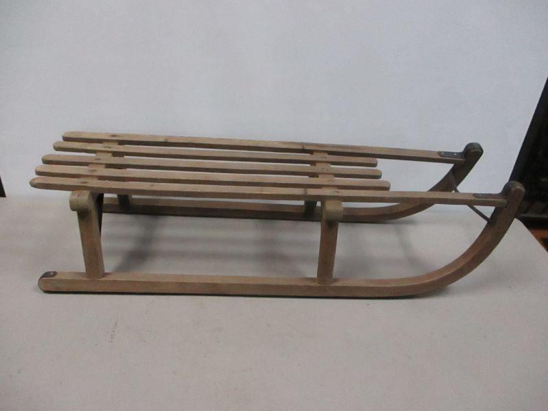 Lot 67 -Antique Primitive Wooden Sleigh with Metal Runners