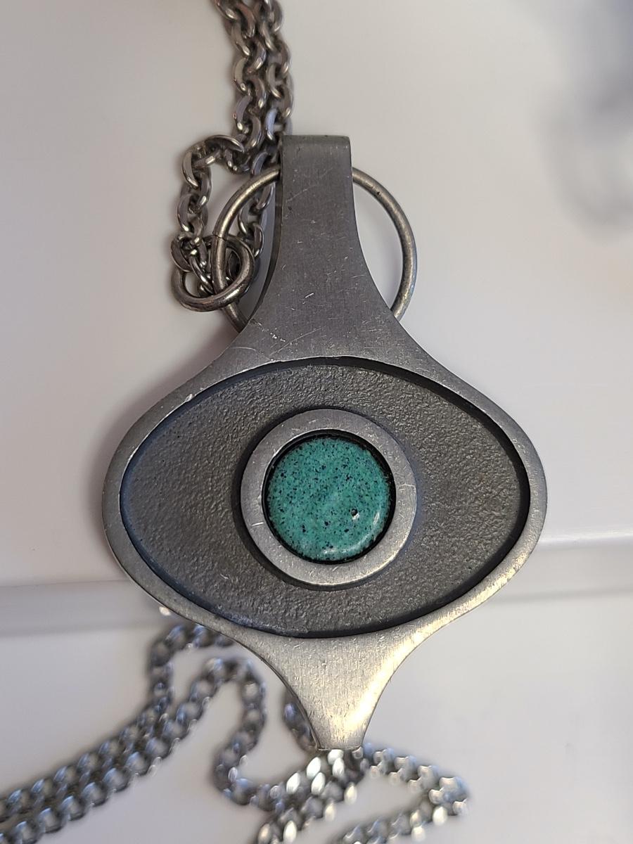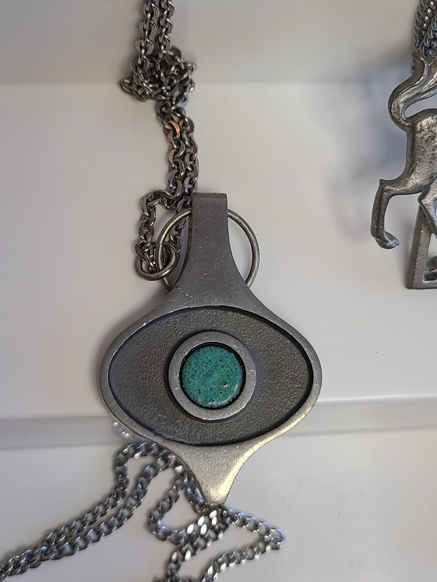 Lot J9: Vintage Pewter/Silver Tone Jewelry: MCM "Troels" Denmark Pendant, Cathedral, FAB and More
