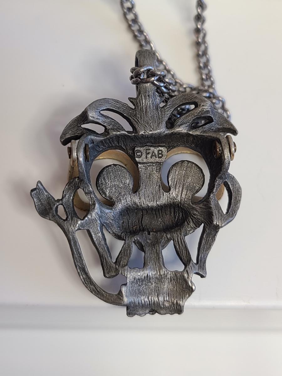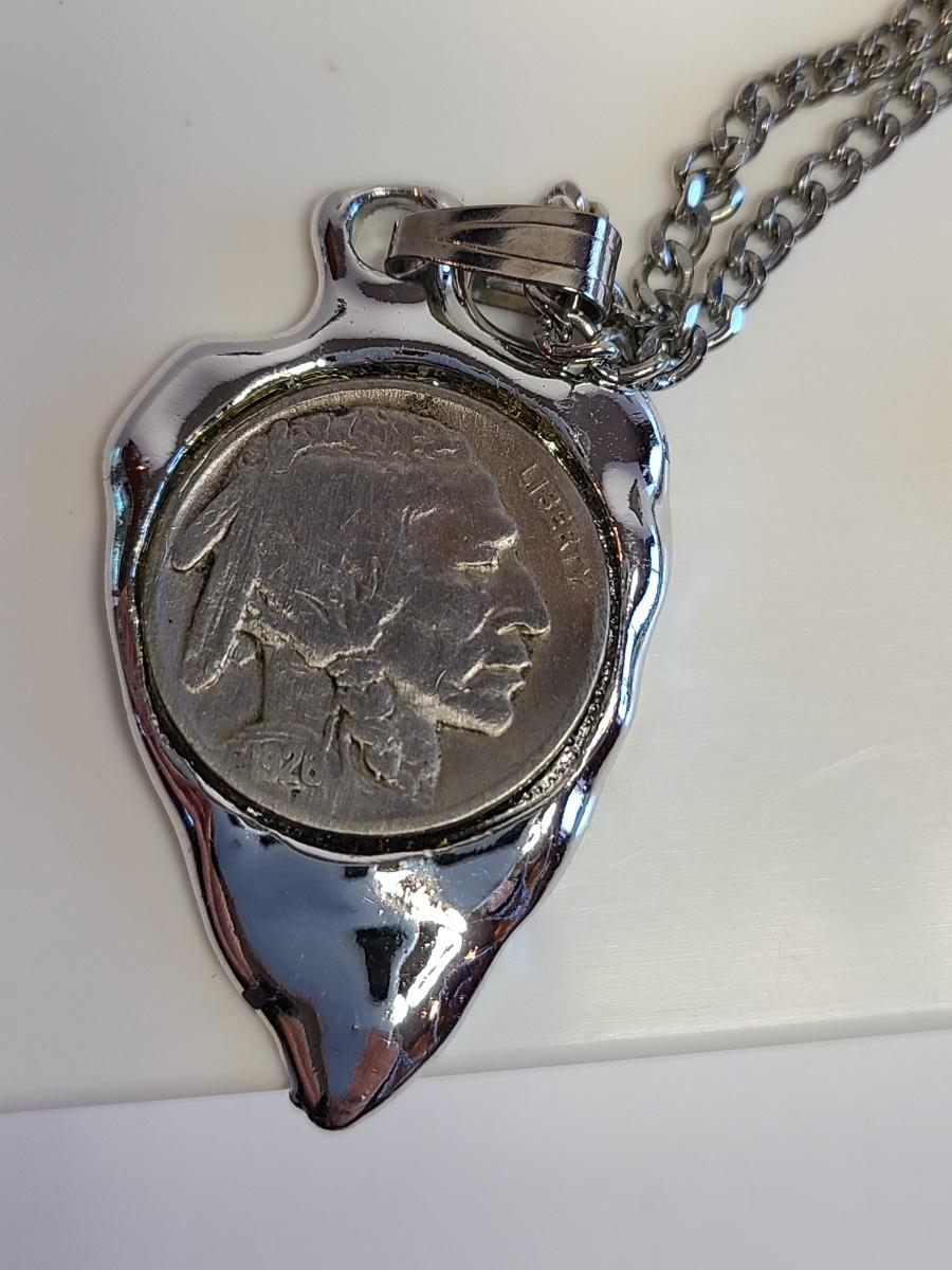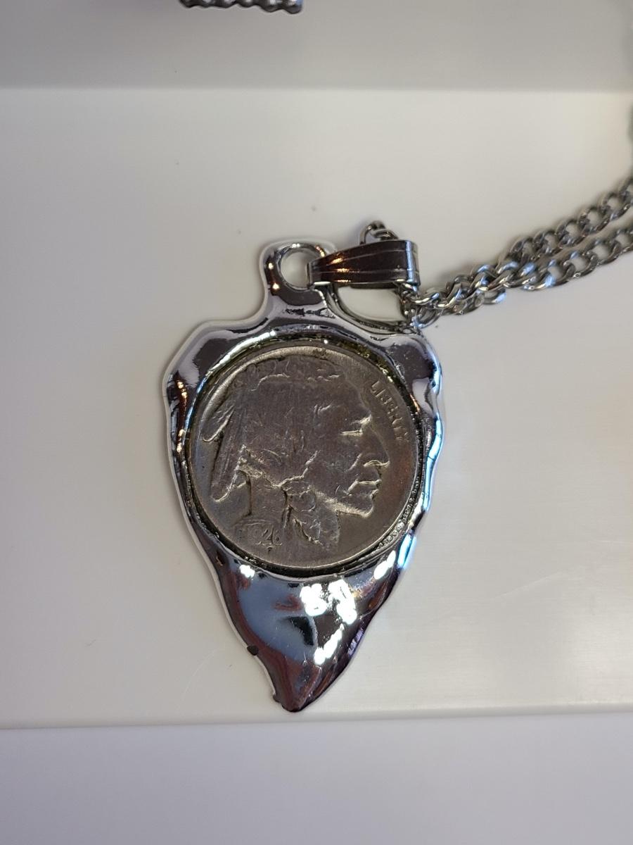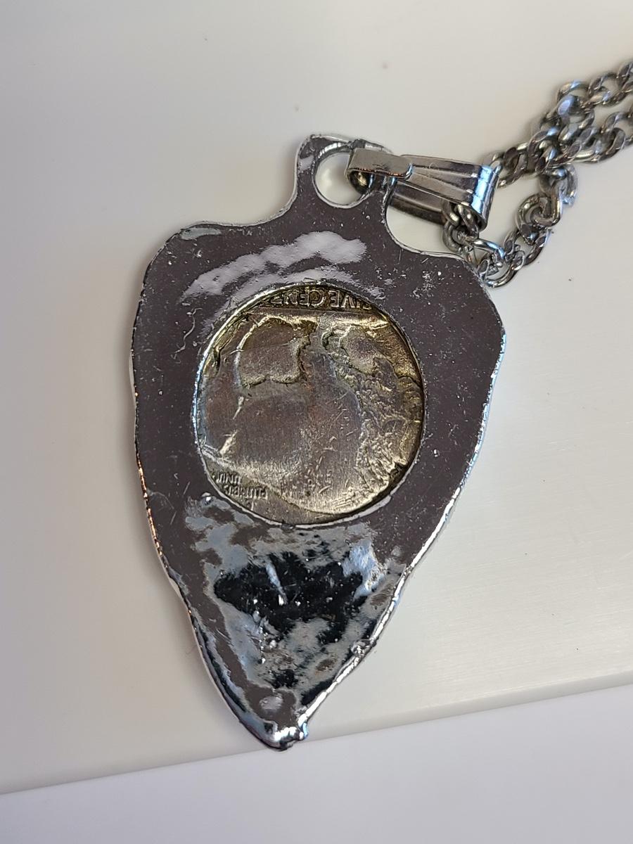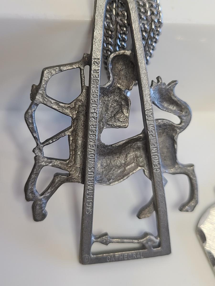 Nice lot of vintage pewter and silver tone jewelry: Buffalo Head Nickel in arrow head pendant, owl watch chain, FAB dog with glasses in pewter, Troels Denmark 70'/80's MCM pendant, Sagittarius Cathedral pendant and more. No sterling in this lot. The chains are silver tone metal. Please see all pictures as they are the best representation of the items. The pictures show condition, measurements if taken, and what is included in the lot. Due to the large amount that we photograph and the time frame, we are not always able to take measurements. All items unless noted, are pre-owned and have been used. If you purchased furniture, you must bring help. We do not allow one person to carry large furniture out on their own. Any damage to the walls, floors, or property is the buyers responsibility to fix, and the damage will be noted and you will charged for repairs, your bidding constitutes your understanding of these terms. Bring help, tools and a truck for the safety of our client’s homes, and your personal safety. Company policy. Thank you.
