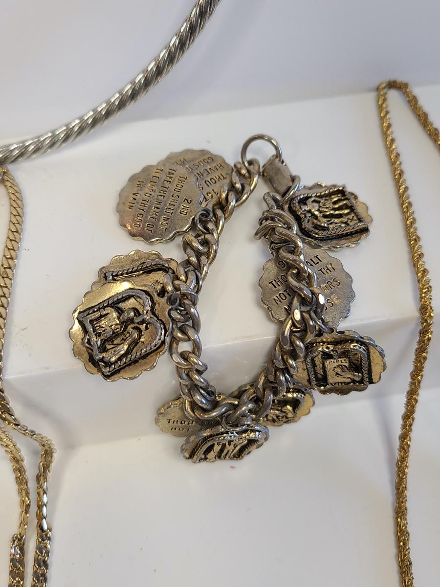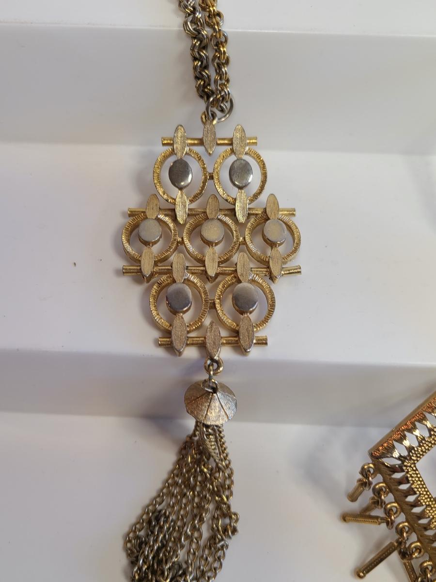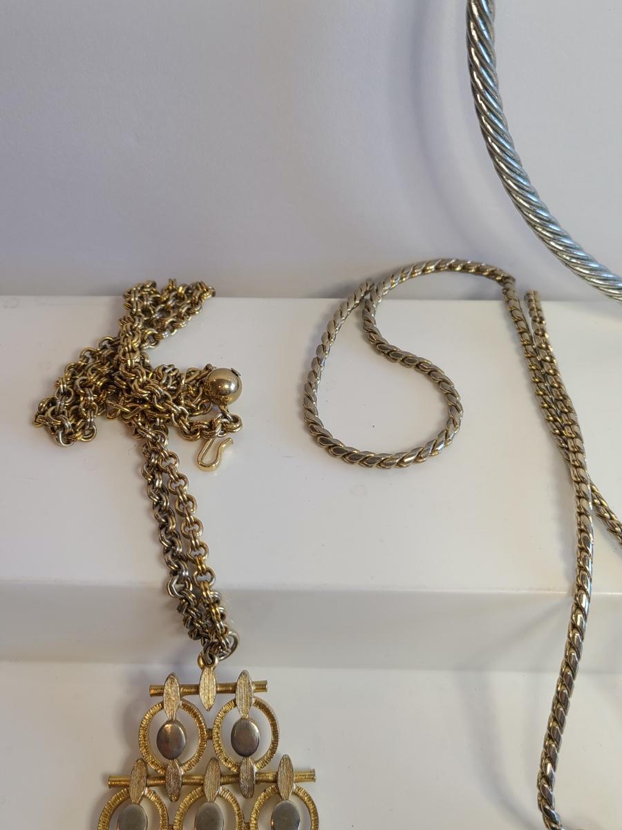 Fun lot of vintage costume jewelry. This is all gold in tone except the choker is silver tone with gold accents. Please see all pictures as they are the best representation of the items. The pictures show condition, measurements if taken, and what is included in the lot. Due to the large amount that we photograph and the time frame, we are not always able to take measurements. All items unless noted, are pre-owned and have been used. If you purchased furniture, you must bring help. We do not allow one person to carry large furniture out on their own. Any damage to the walls, floors, or property is the buyers responsibility to fix, and the damage will be noted and you will charged for repairs, your bidding constitutes your understanding of these terms. Bring help, tools and a truck for the safety of our client’s homes, and your personal safety. Company policy. Thank you.