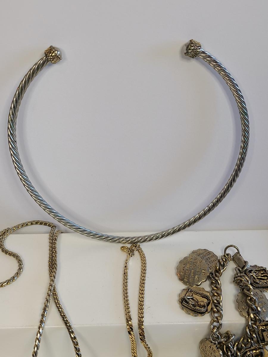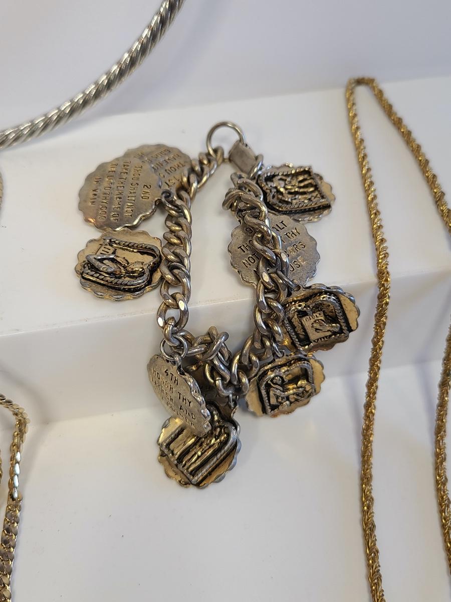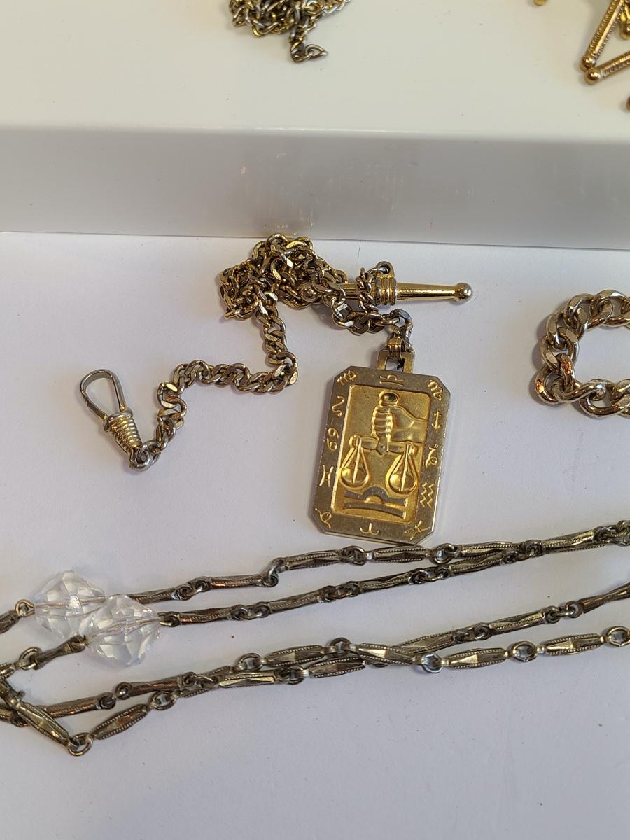 Fun lot of vintage costume jewelry. This is all gold in tone except the choker is silver tone with gold accents. Please see all pictures as they are the best representation of the items. The pictures show condition, measurements if taken, and what is included in the lot. Due to the large amount that we photograph and the time frame, we are not always able to take measurements. All items unless noted, are pre-owned and have been used. If you purchased furniture, you must bring help. We do not allow one person to carry large furniture out on their own. Any damage to the walls, floors, or property is the buyers responsibility to fix, and the damage will be noted and you will charged for repairs, your bidding constitutes your understanding of these terms. Bring help, tools and a truck for the safety of our client’s homes, and your personal safety. Company policy. Thank you.