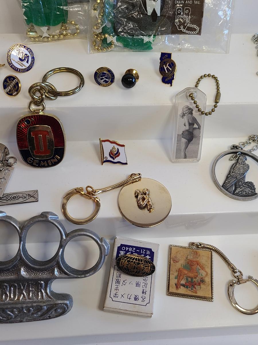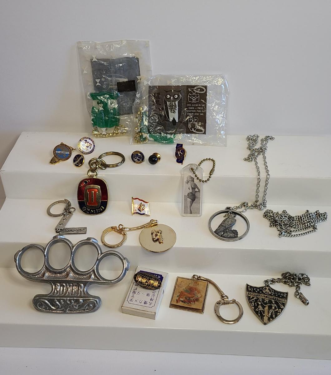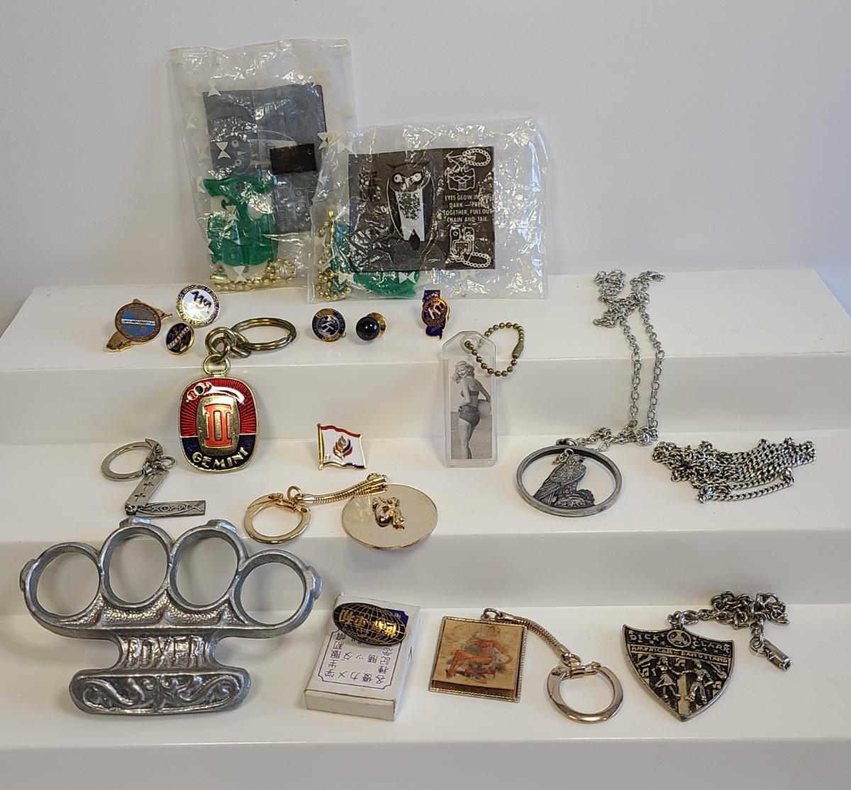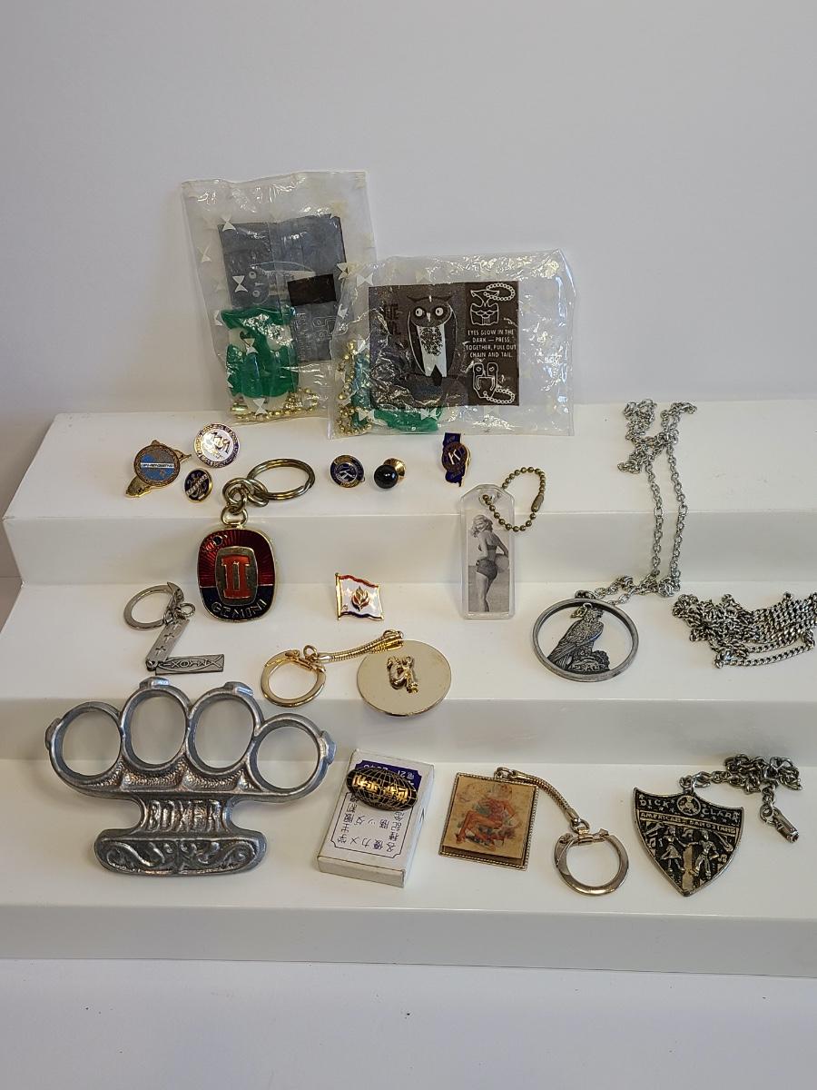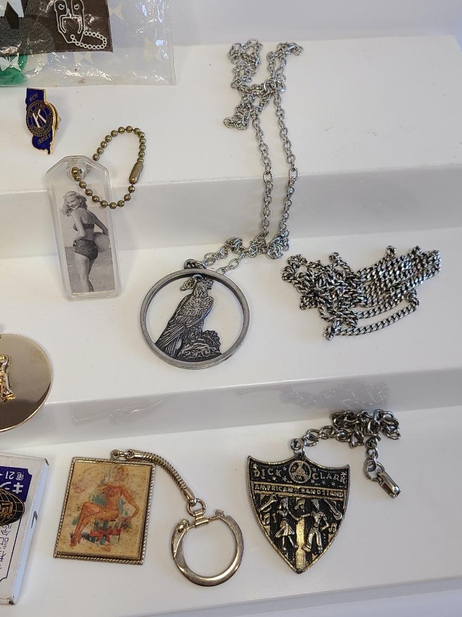 Lot J4: Vintage Mens Jewelry Box Finds: Keychains, Pewter Eagle Pendant, Dick Clark Bandstand and More