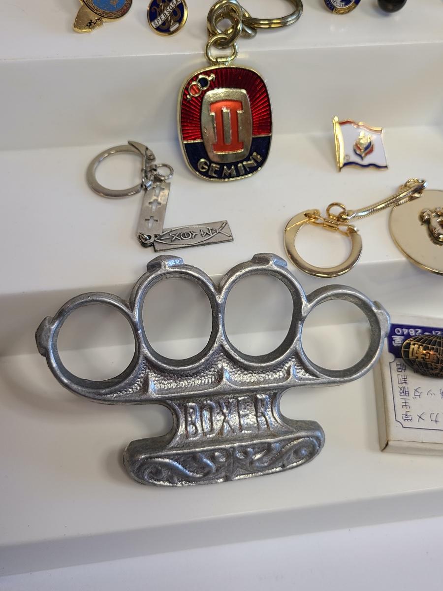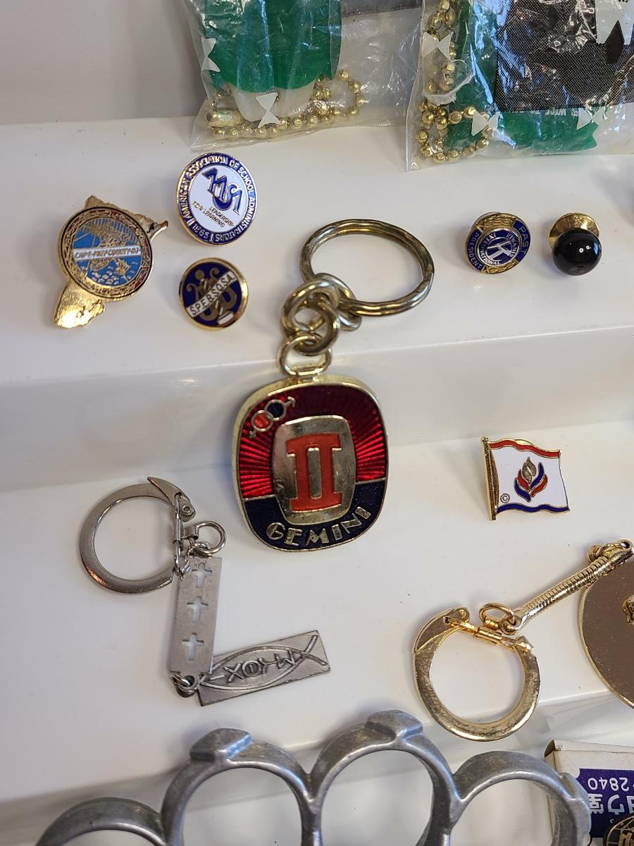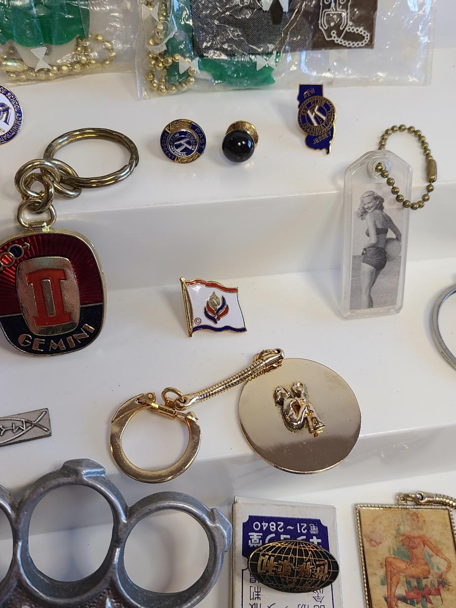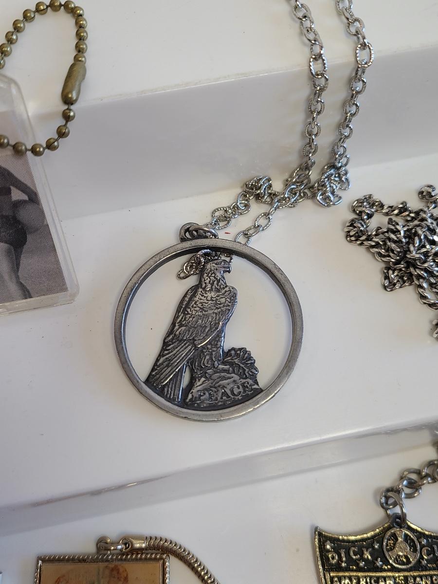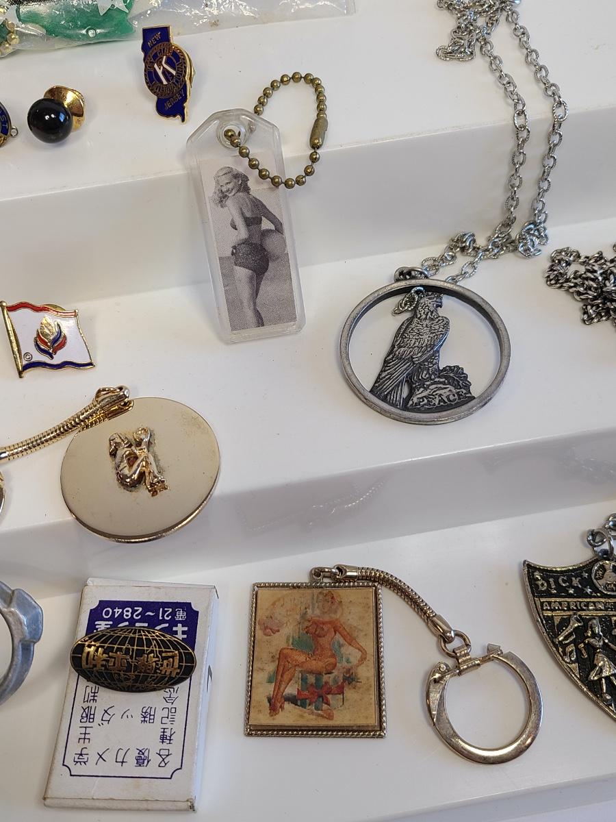 Lot J4: Vintage Mens Jewelry Box Finds: Keychains, Pewter Eagle Pendant, Dick Clark Bandstand and More