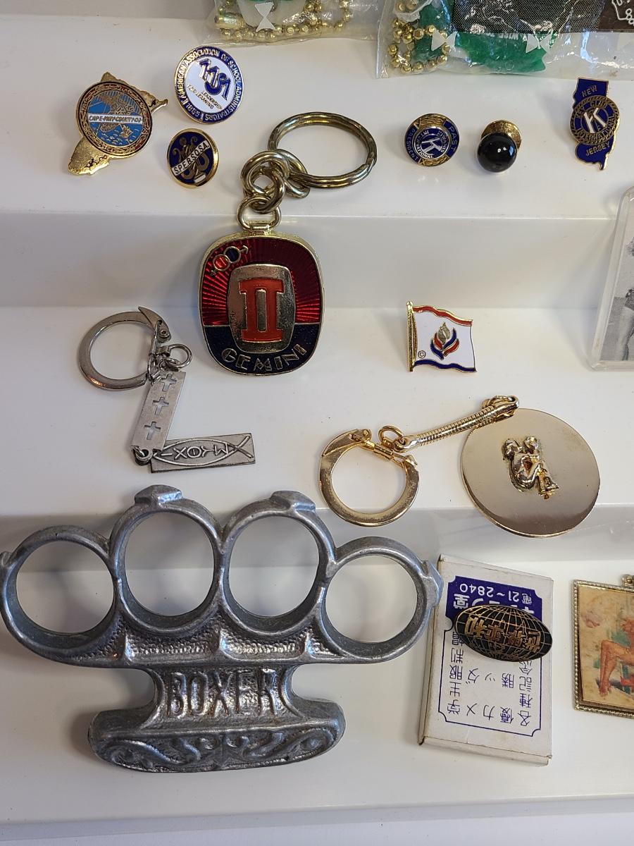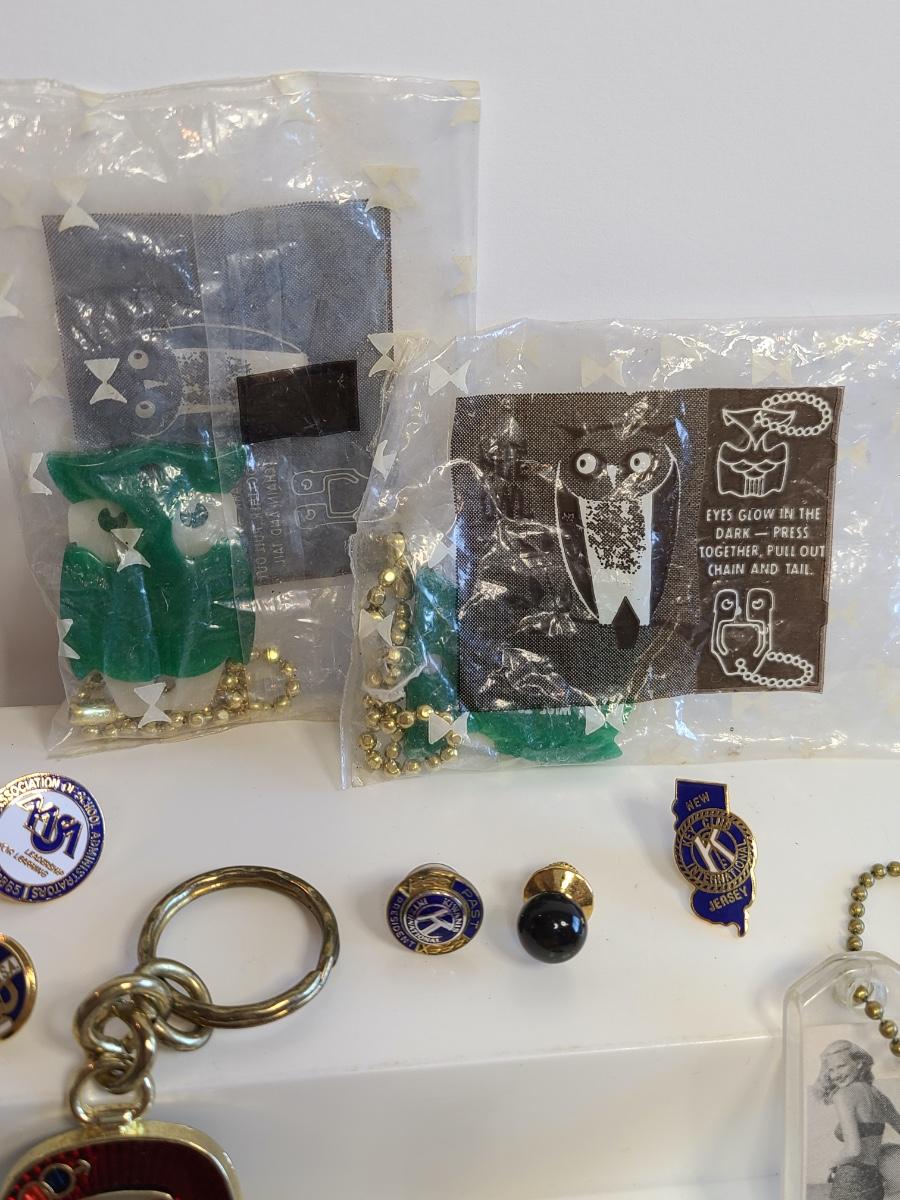 Fun lot of vintage finds from a mens dresser drawer/jewelry box. Please see all pictures as they are the best representation of the items. The pictures show condition, measurements if taken, and what is included in the lot. Due to the large amount that we photograph and the time frame, we are not always able to take measurements. All items unless noted, are pre-owned and have been used. If you purchased furniture, you must bring help. We do not allow one person to carry large furniture out on their own. Any damage to the walls, floors, or property is the buyers responsibility to fix, and the damage will be noted and you will charged for repairs, your bidding constitutes your understanding of these terms. Bring help, tools and a truck for the safety of our client’s homes, and your personal safety. Company policy. Thank you.