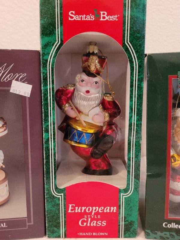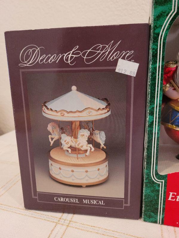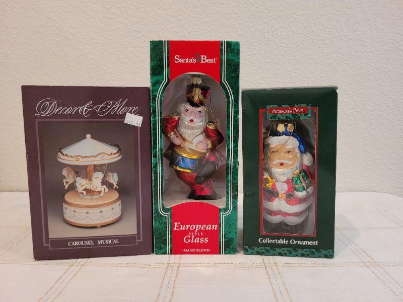 Lot 673: Season's Best European Glass Ornaments (2) and Musical Carousel