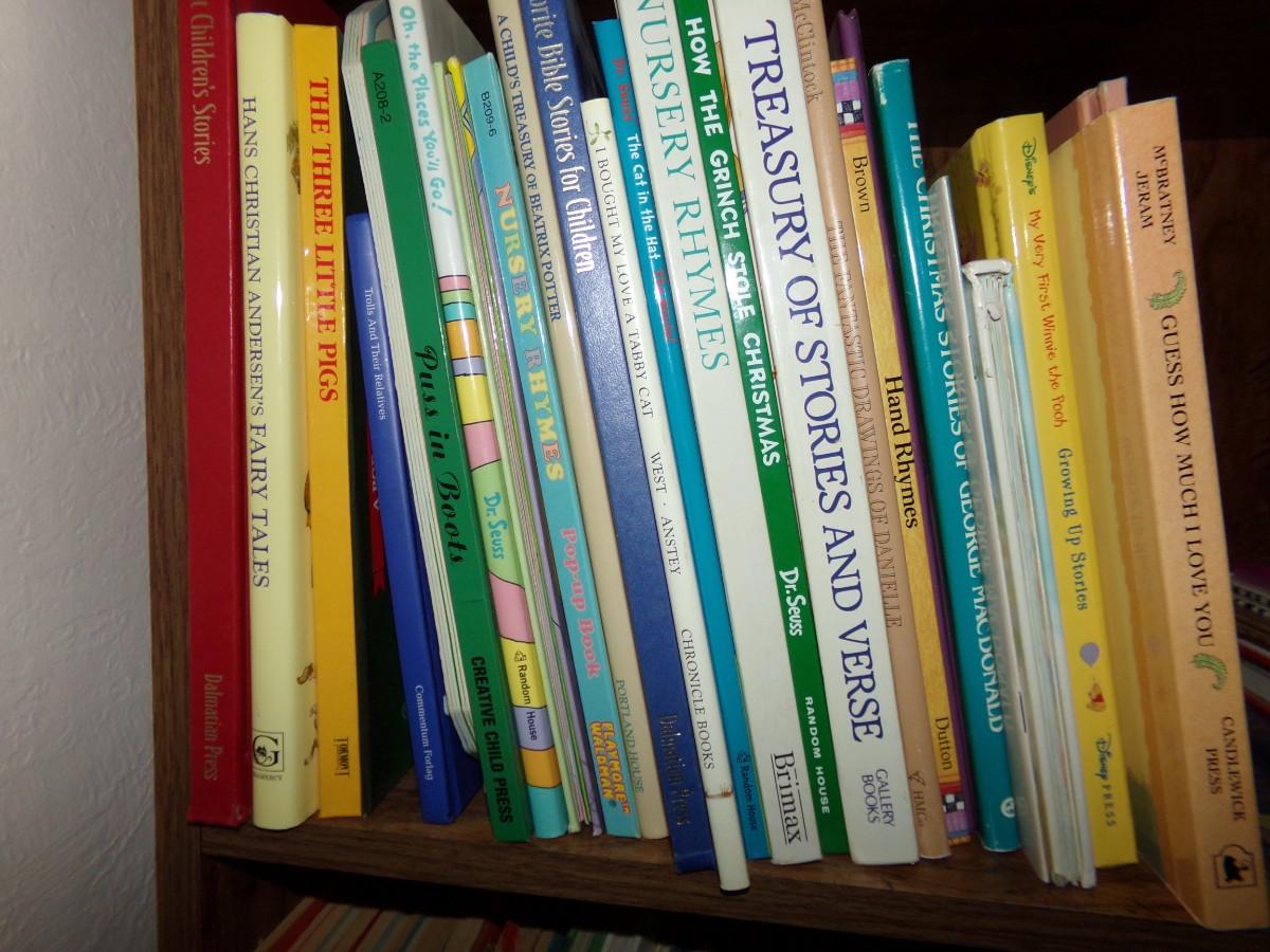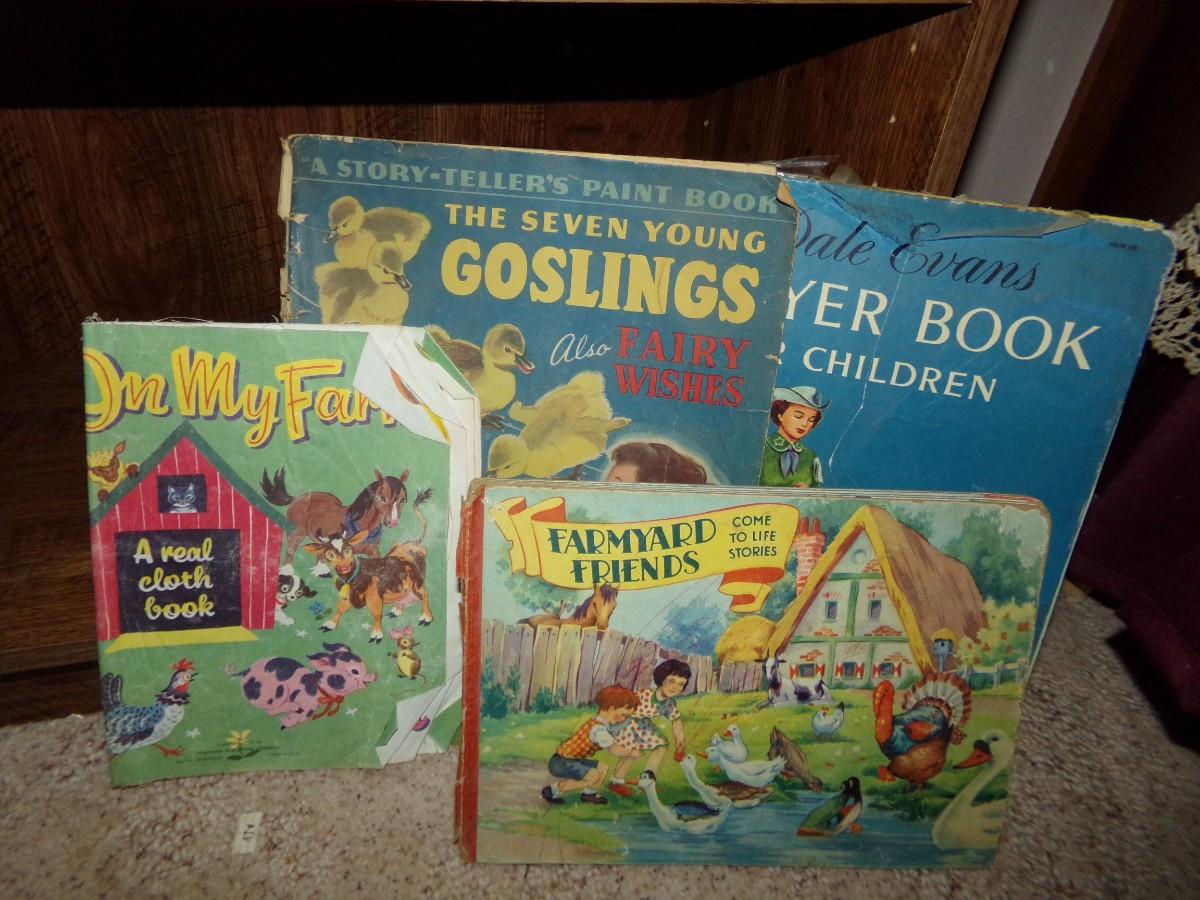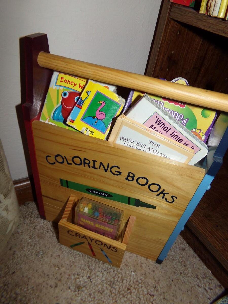 LARGE ASSORTMENT OF CHILDREN'S BOOKS. MANY ARE STORIES FROM OLDER DAYS. ALSO A WOODEN BOX THAT SAYS COLORING BOOKS.
