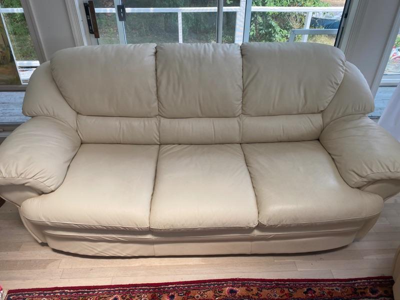 Sofa is missing one foot in front / measuring 80” x 36” x 36” t