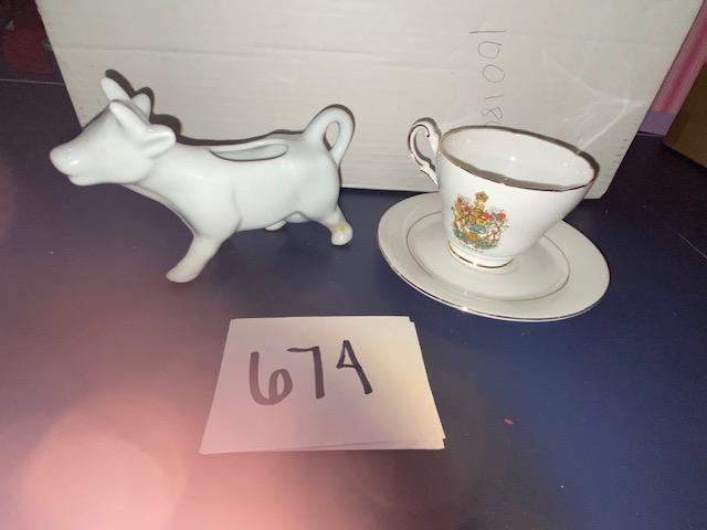 Lot 674 - Teacup and cow creamer