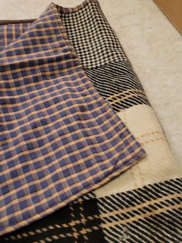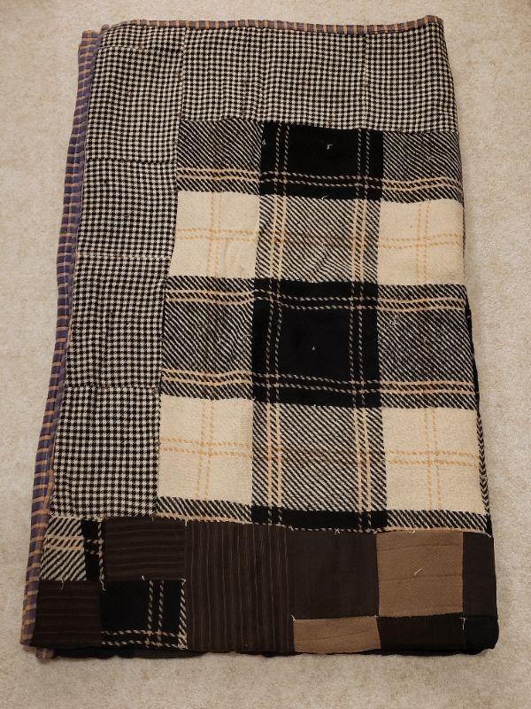 Lot 674: Vintage Wool Plaids Quilt 82" × 50" (black, white & browns)