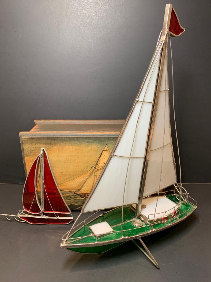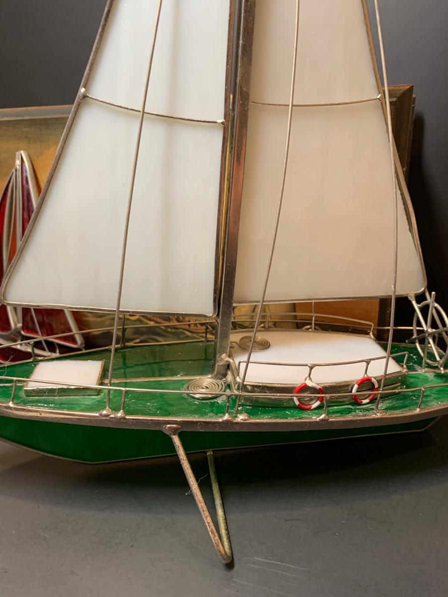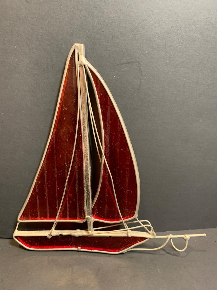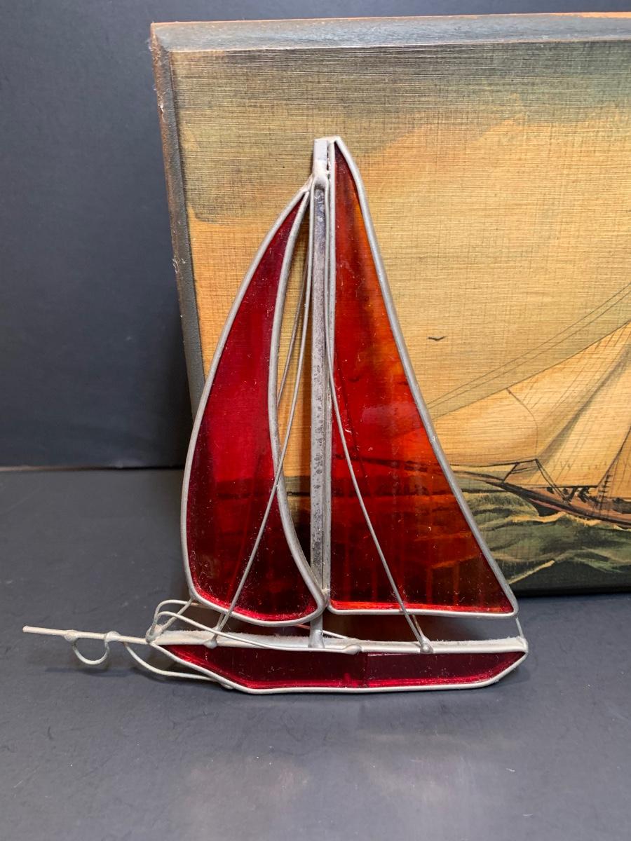 LOT 7: Stained Glass Sailboat, Signed Painted Box & Sun Catcher
