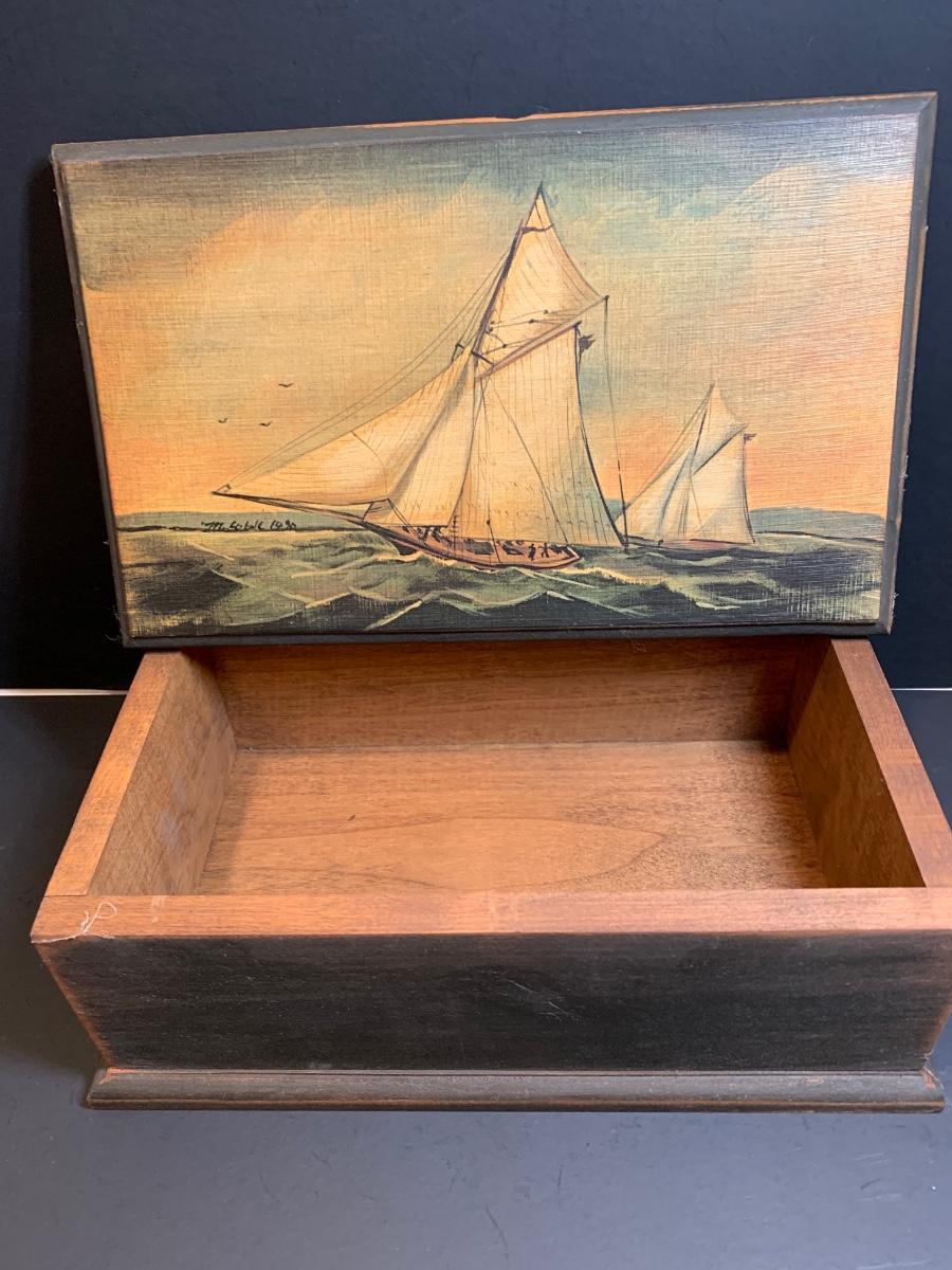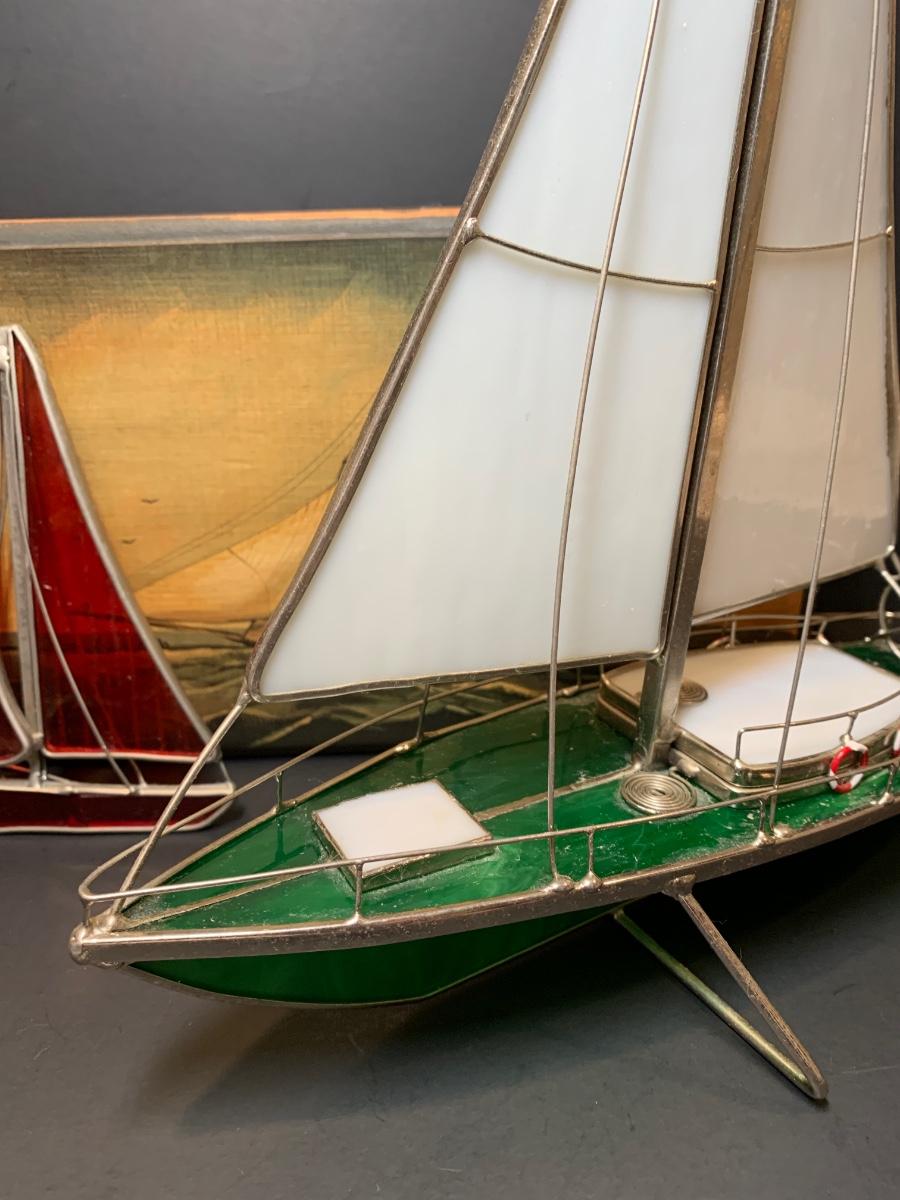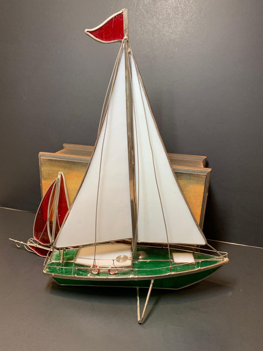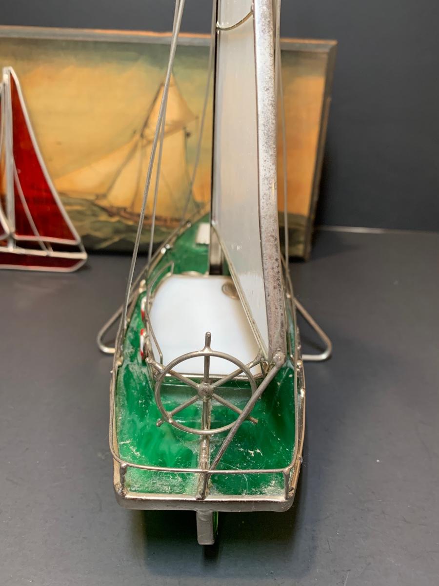 LOT 7: Stained Glass Sailboat, Signed Painted Box & Sun Catcher