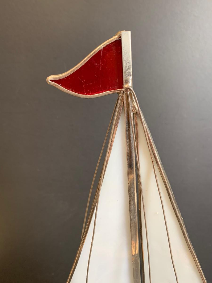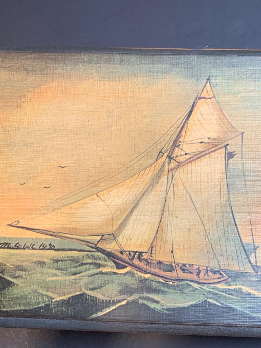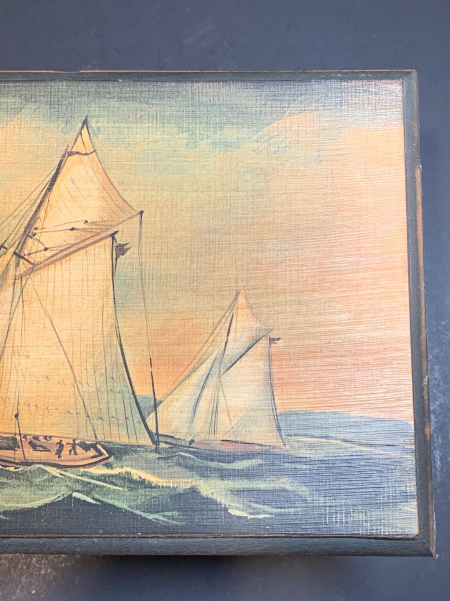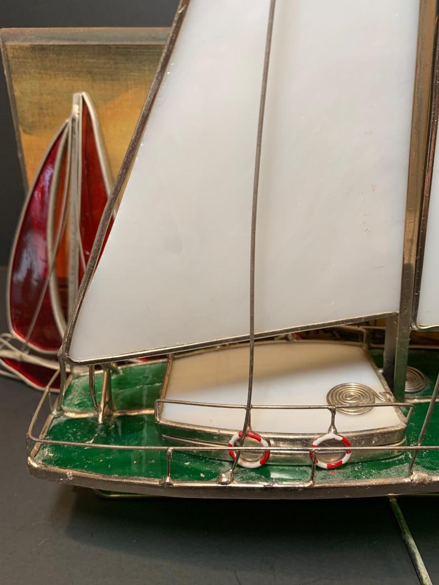 LOT 7: Stained Glass Sailboat, Signed Painted Box & Sun Catcher