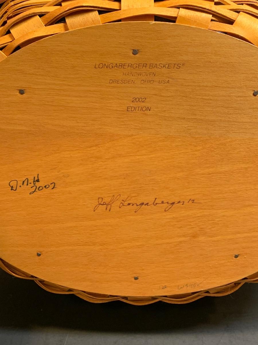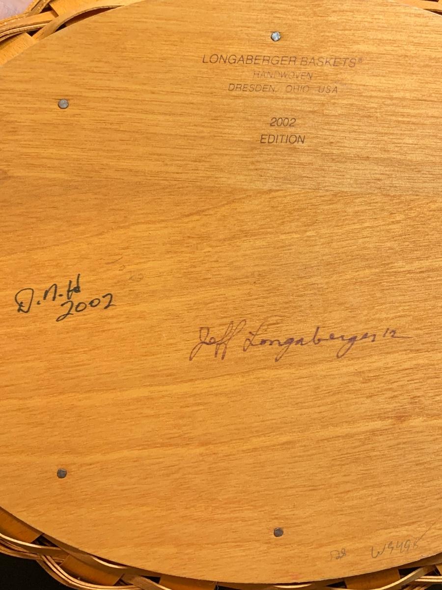 LOT 20: Longaberger Gathering Basket Signed by Jeff Longaberger & Round Basket