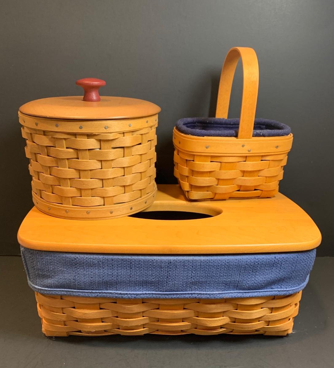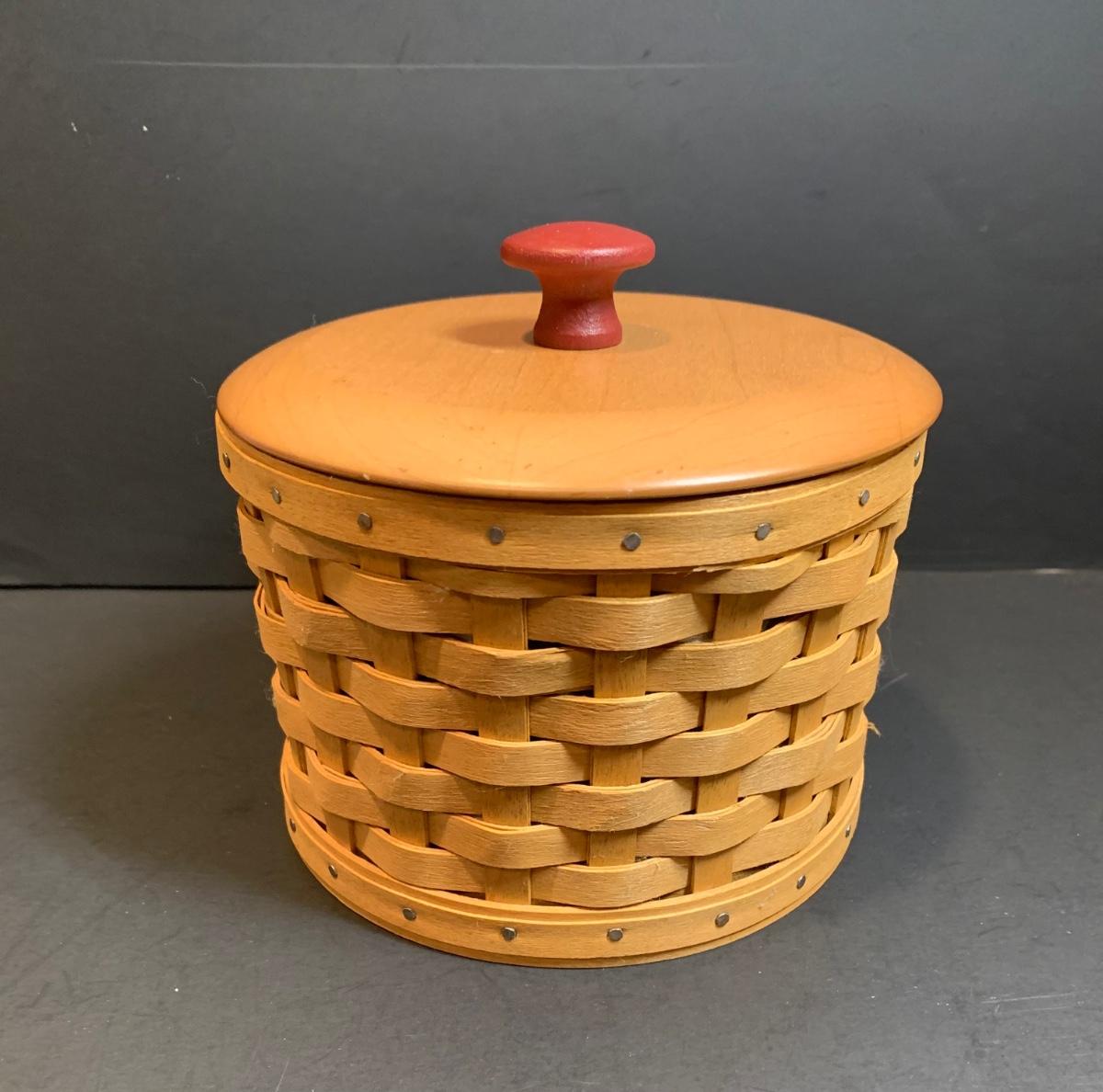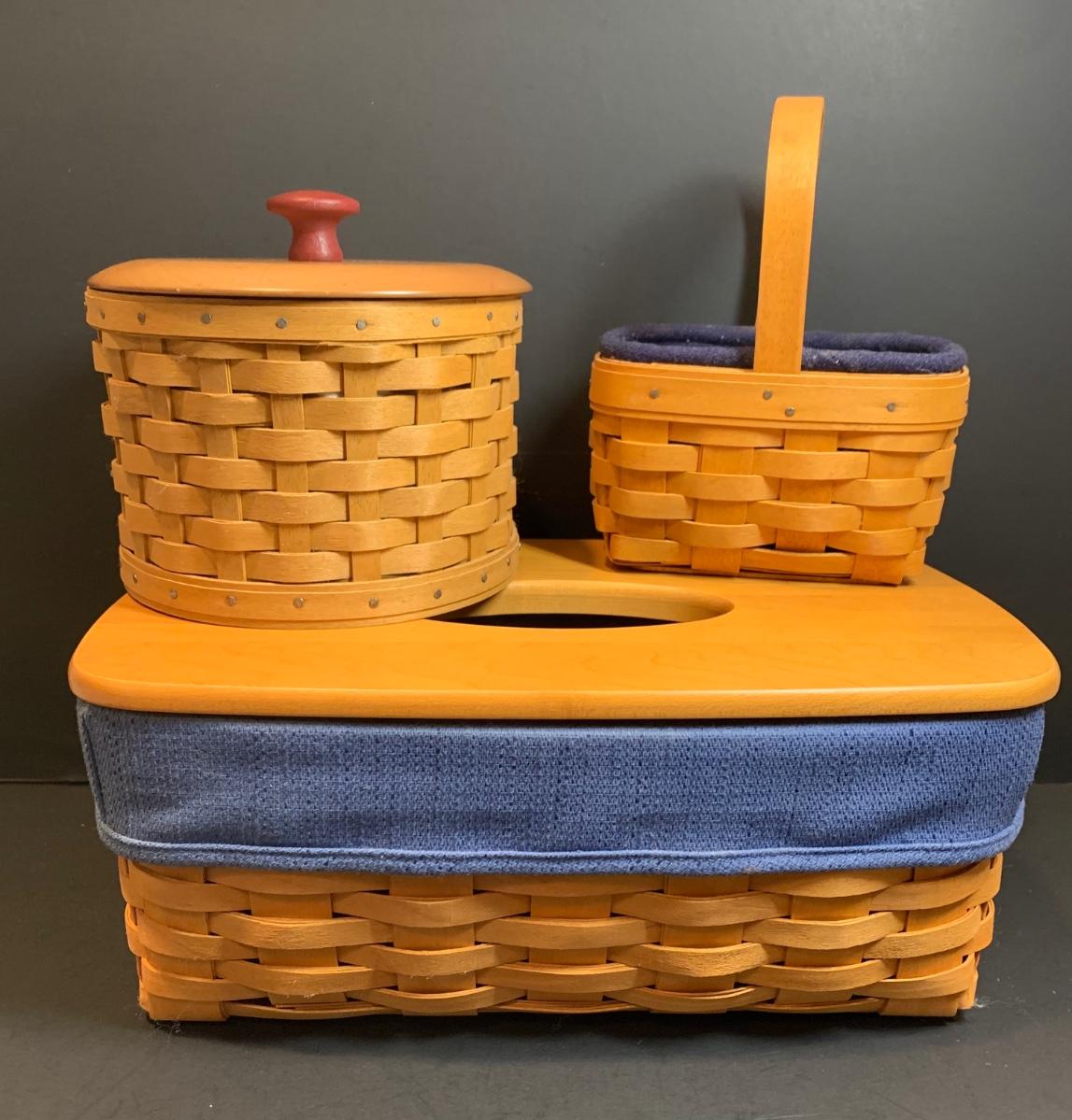 LOT 21:  Longaberger Baskets: Tissue Holder, Lidded Round & Small Trinket