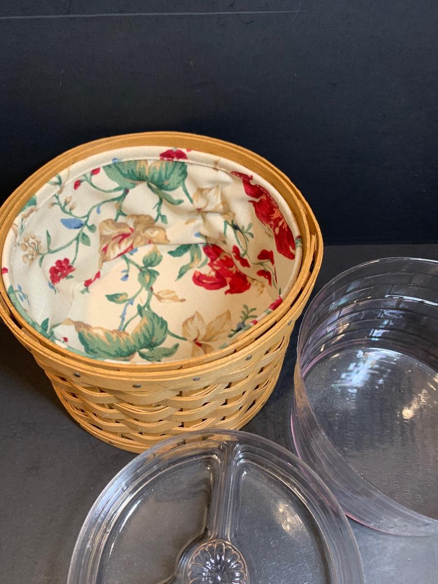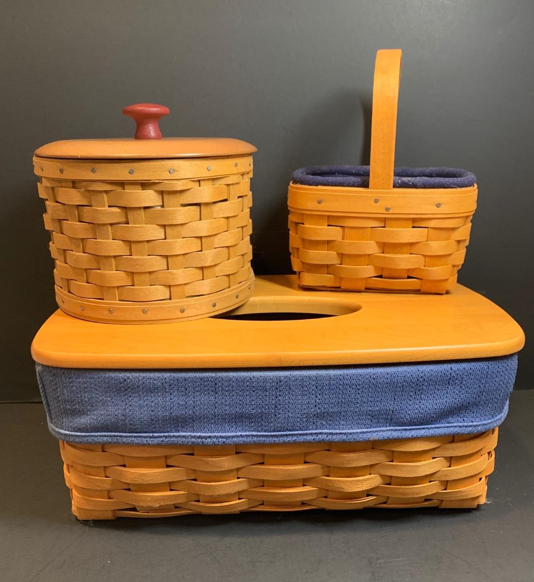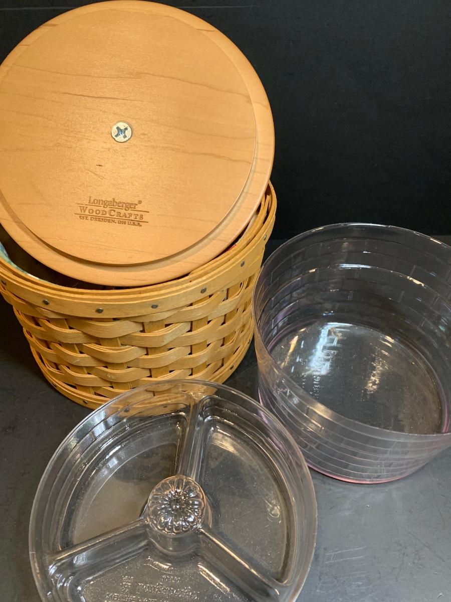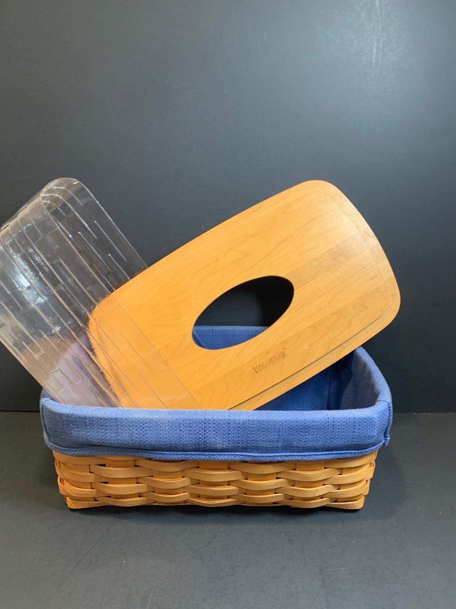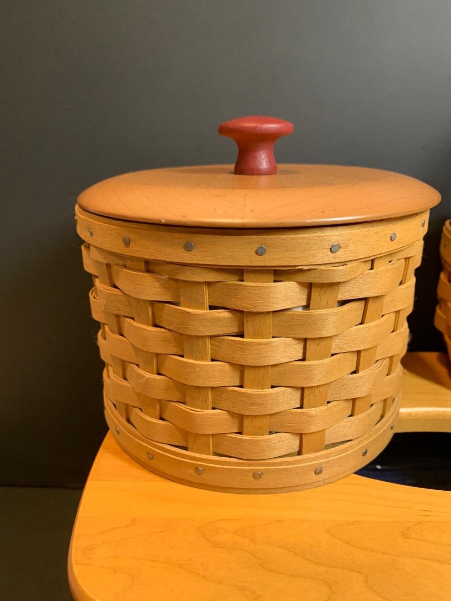 LOT 21: Longaberger Baskets: Tissue Holder, Lidded Round & Small Trinket