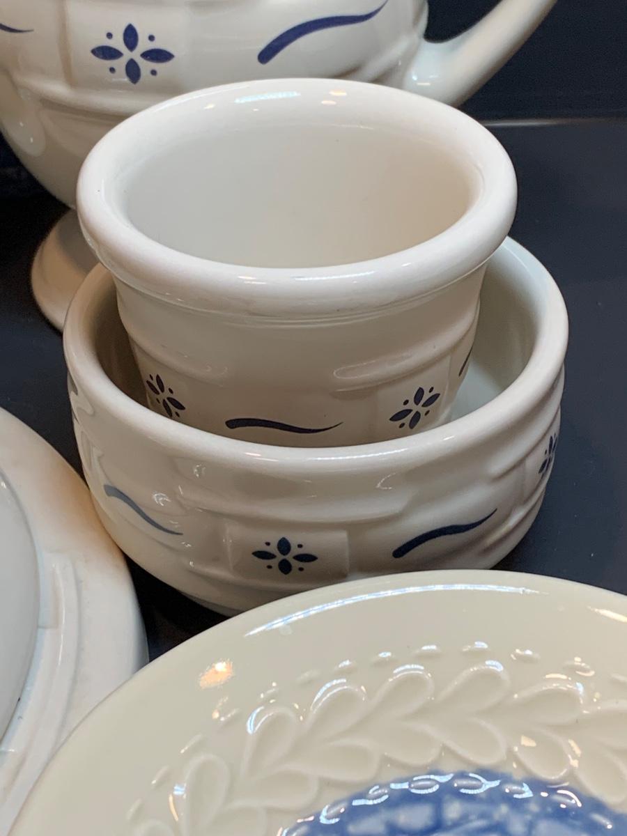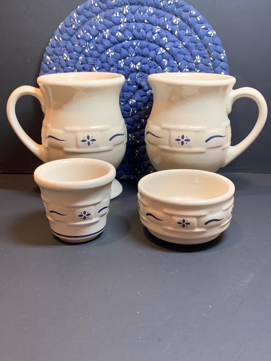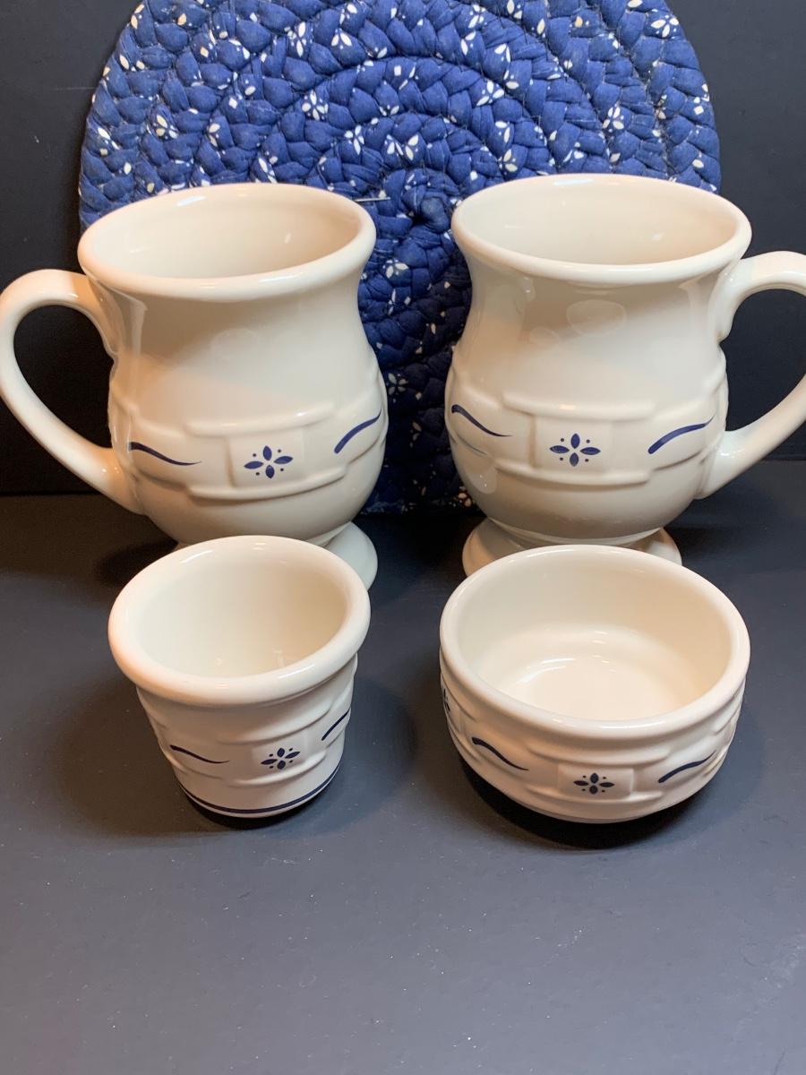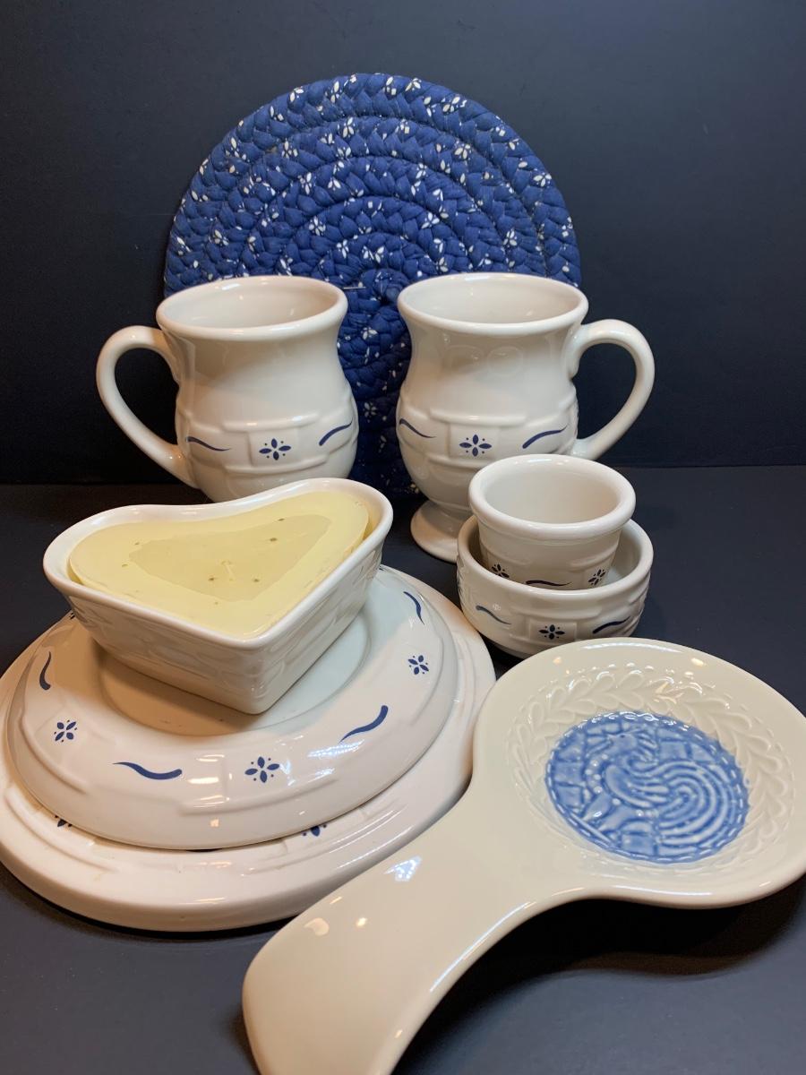 LOT 79: Longaberger Pottery:  Mugs. Heart Candle, Spoon Rest & More