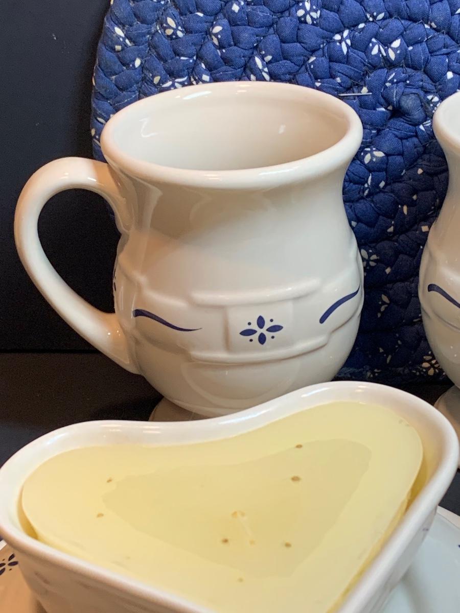 LOT 79: Longaberger Pottery: Mugs. Heart Candle, Spoon Rest & More