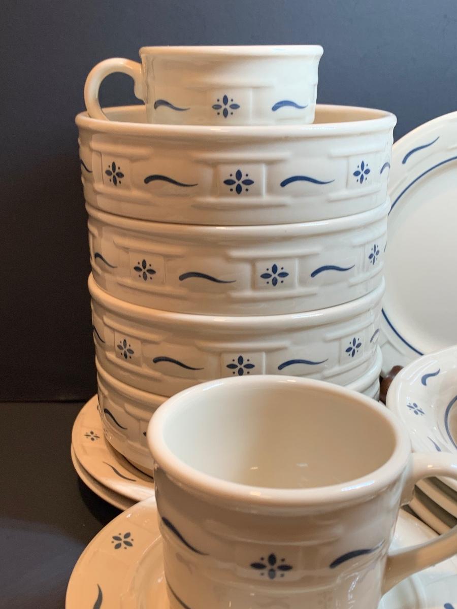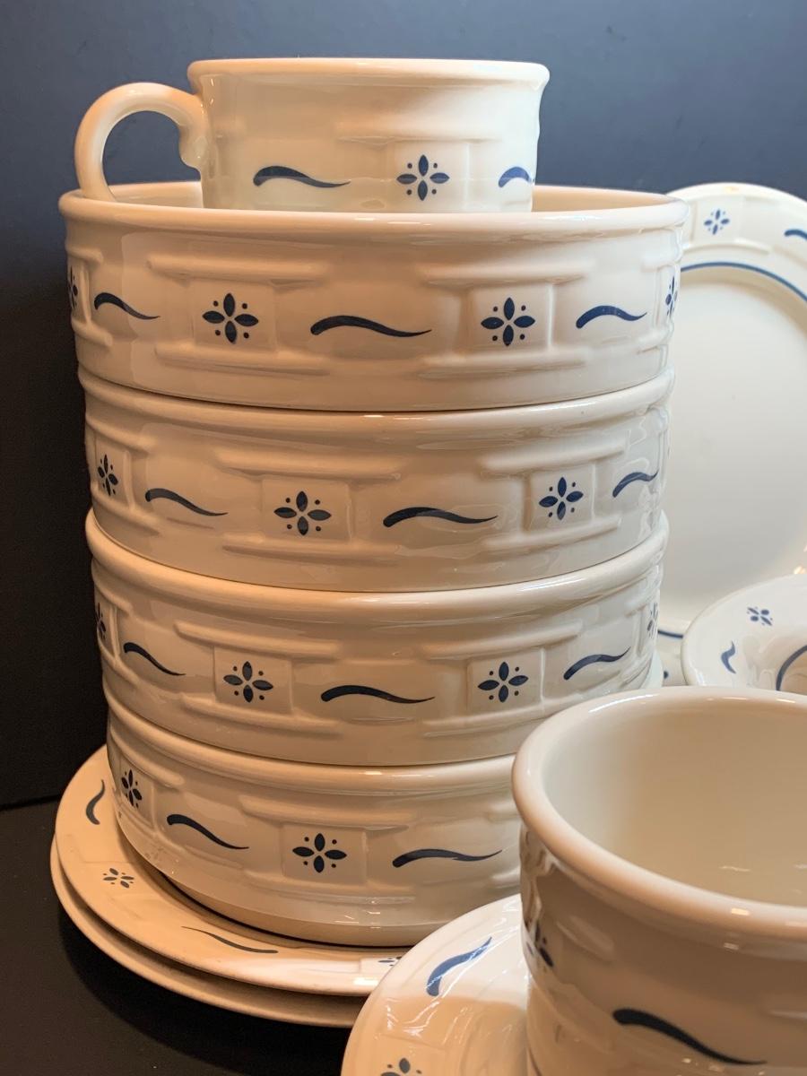 Longaberger Pottery Woven Traditions: cups & saucers, bowls, small plates (3) all others are 4 each