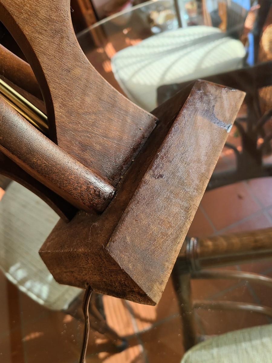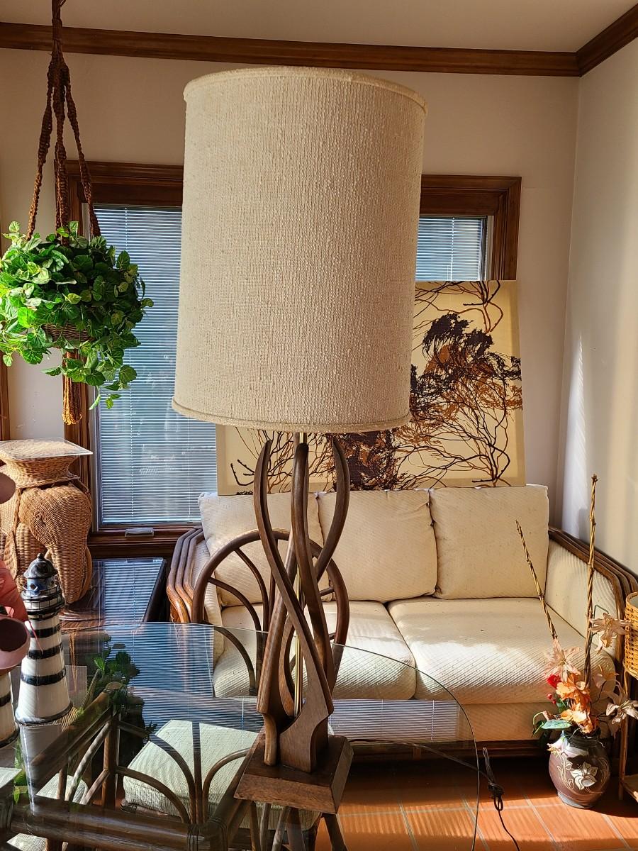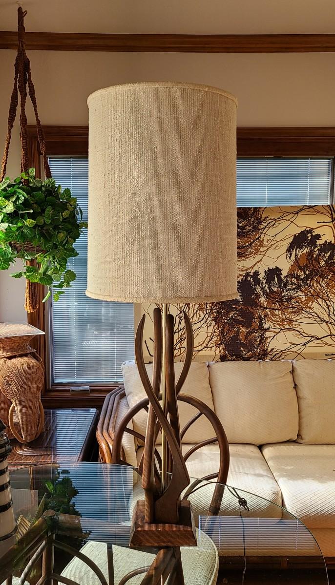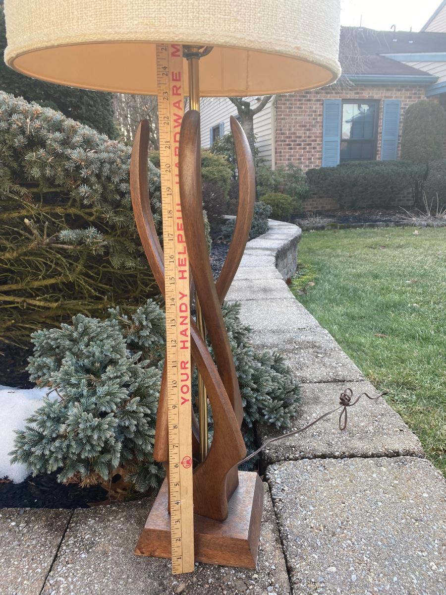 This is for lamp only. This is a fun mid century piece, but it needs a light cleaning, oiling on the wood, and a new shade. Please see all pictures as they are the best representation of the items. The pictures show condition, measurements if taken, and what is included in the lot. Due to the large amount that we photograph and the time frame, we are not always able to take measurements. All items unless noted, are pre-owned and have been used. If you purchased furniture, you must bring help. We do not allow one person to carry large furniture out on their own. Bring help, tools and a truck for the safety of our client’s homes, and your personal safety. Any damages that result to the property including walls, and floors due to moving of the furniture will be charged to the buyer. Company policy. Thank you.