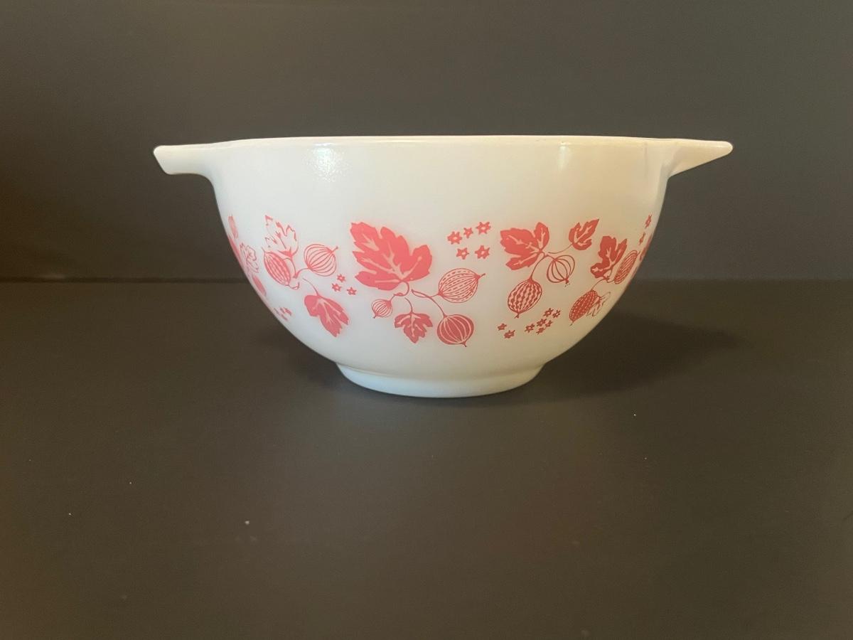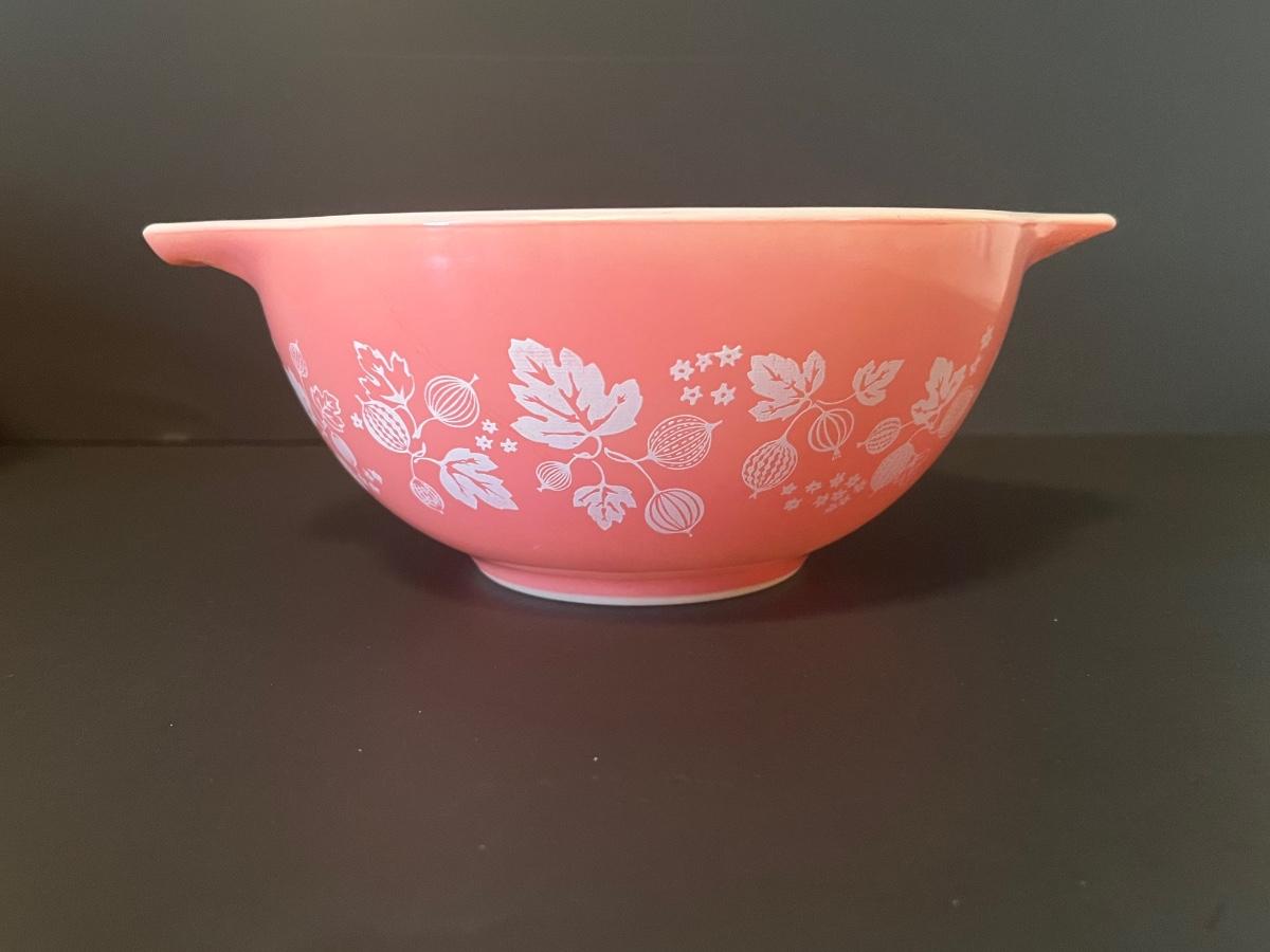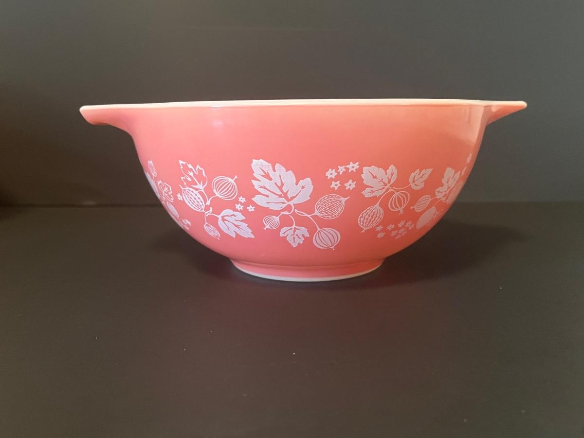 LOT 102: Vintage Pyrex Pink Gooseberry Mixing Bowl Set