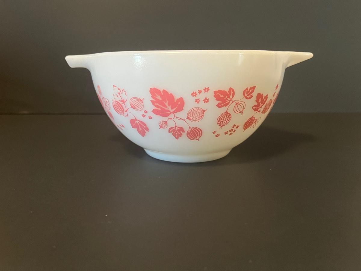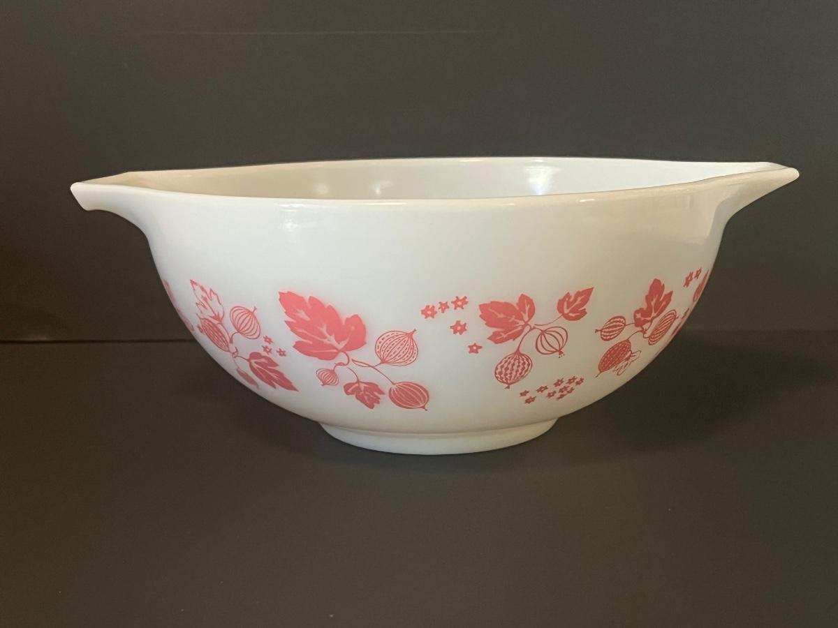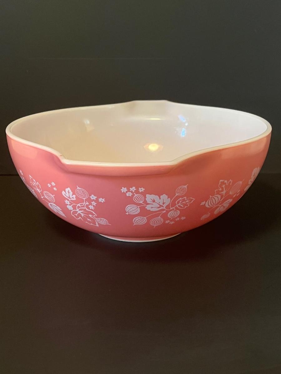 LOT 102: Vintage Pyrex Pink Gooseberry Mixing Bowl Set