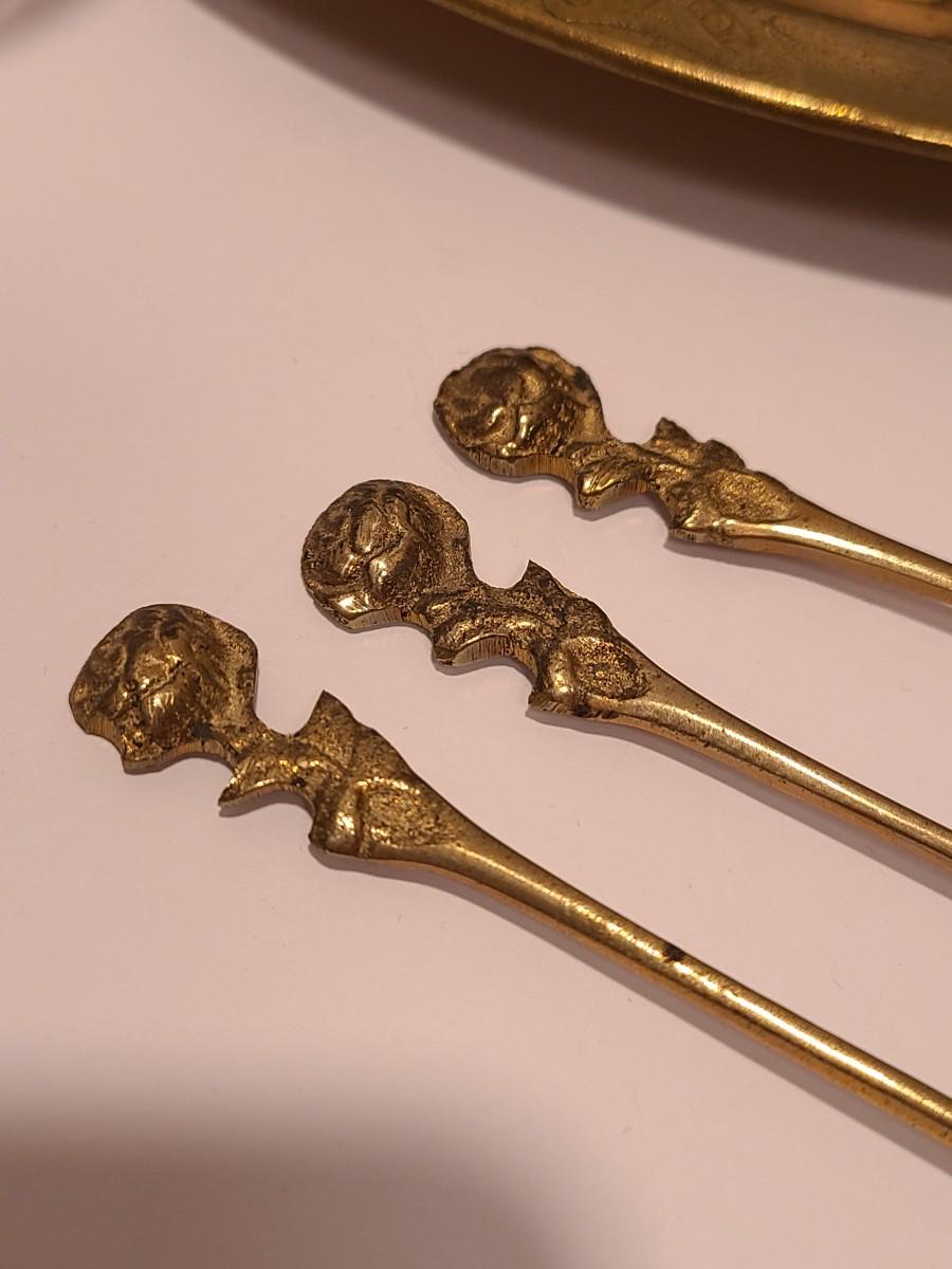 Vintage brass set. Please see all pictures as they are the best representation of the items. The pictures show condition, measurements if taken, and what is included in the lot. Due to the large amount that we photograph and the time frame, we are not always able to take measurements. All items unless noted, are pre-owned and have been used. If you purchased furniture, you must bring help. We do not allow one person to carry large furniture out on their own. Bring help, tools and a truck for the safety of our client’s homes, and your personal safety. Any damages that result to the property including walls, and floors due to moving of the furniture will be charged to the buyer. Company policy. Thank you.