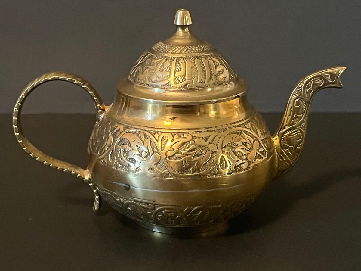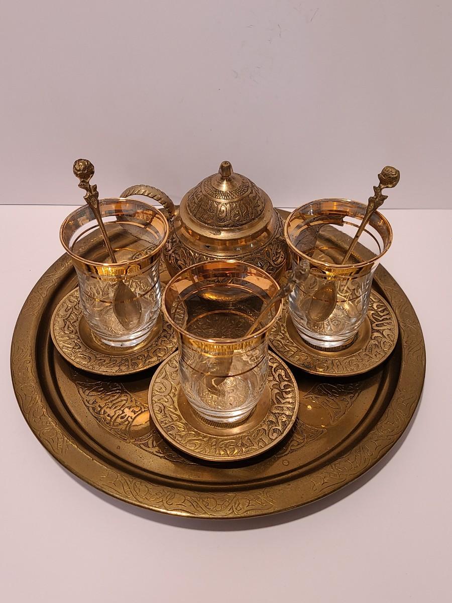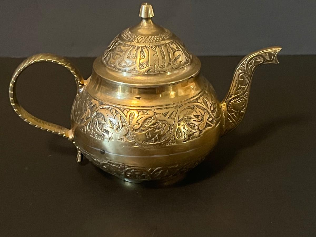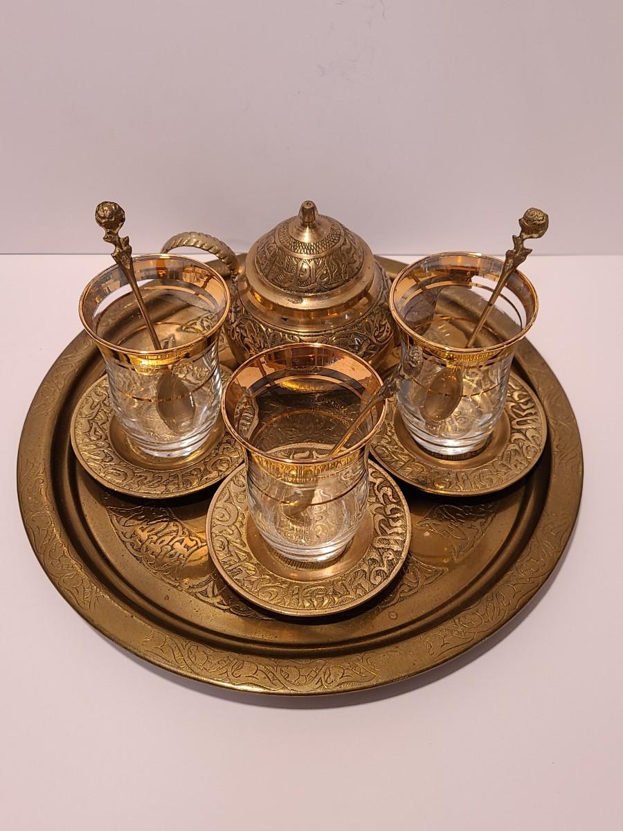 LOT 116: Vintage Brass Tray, Teapot, Coaster, Made in Istanbul