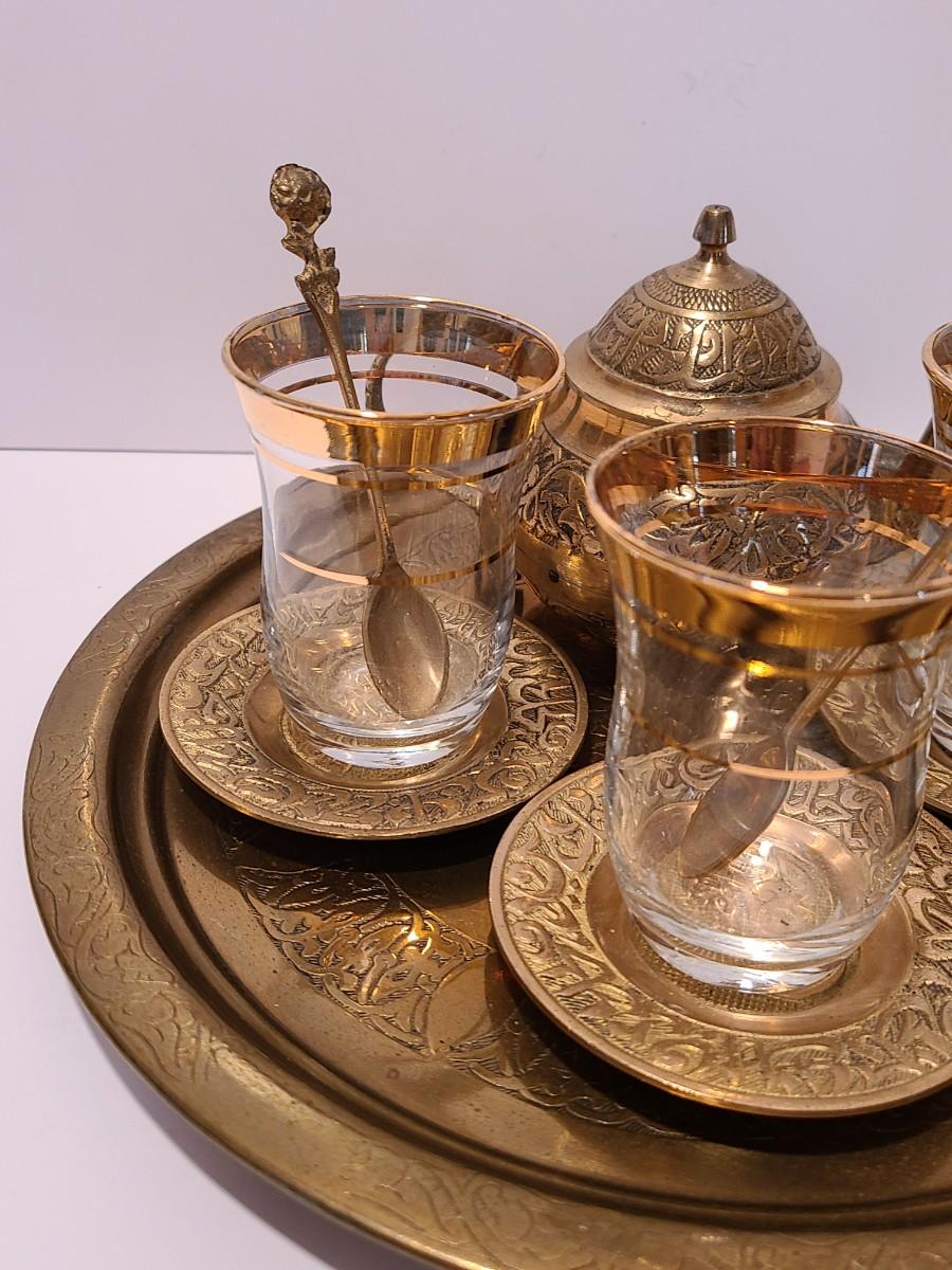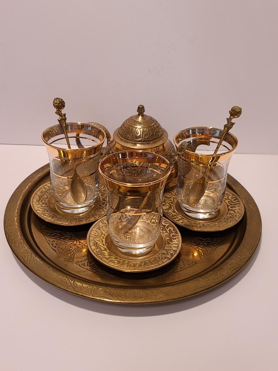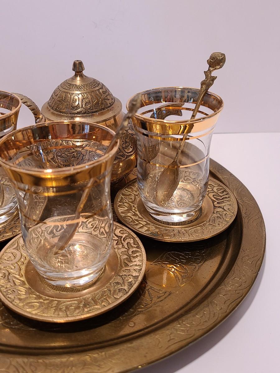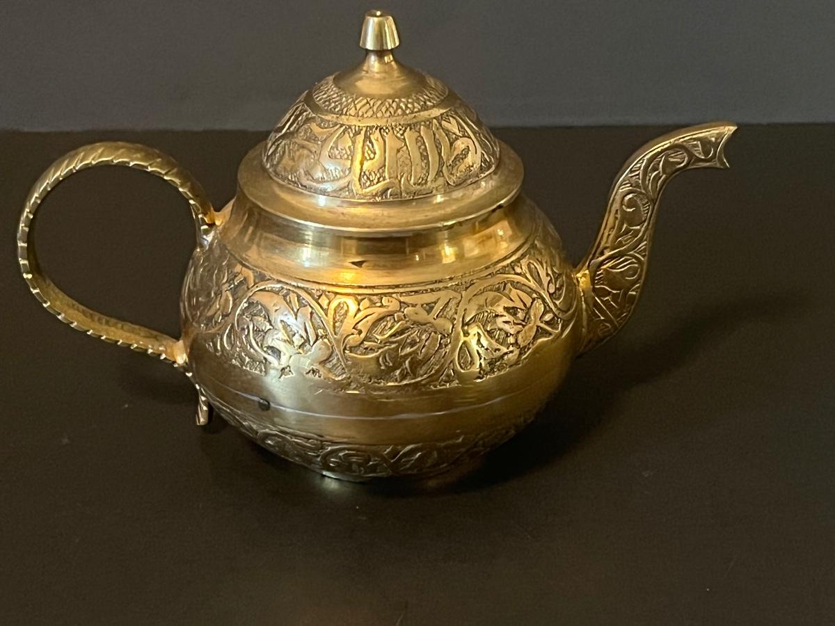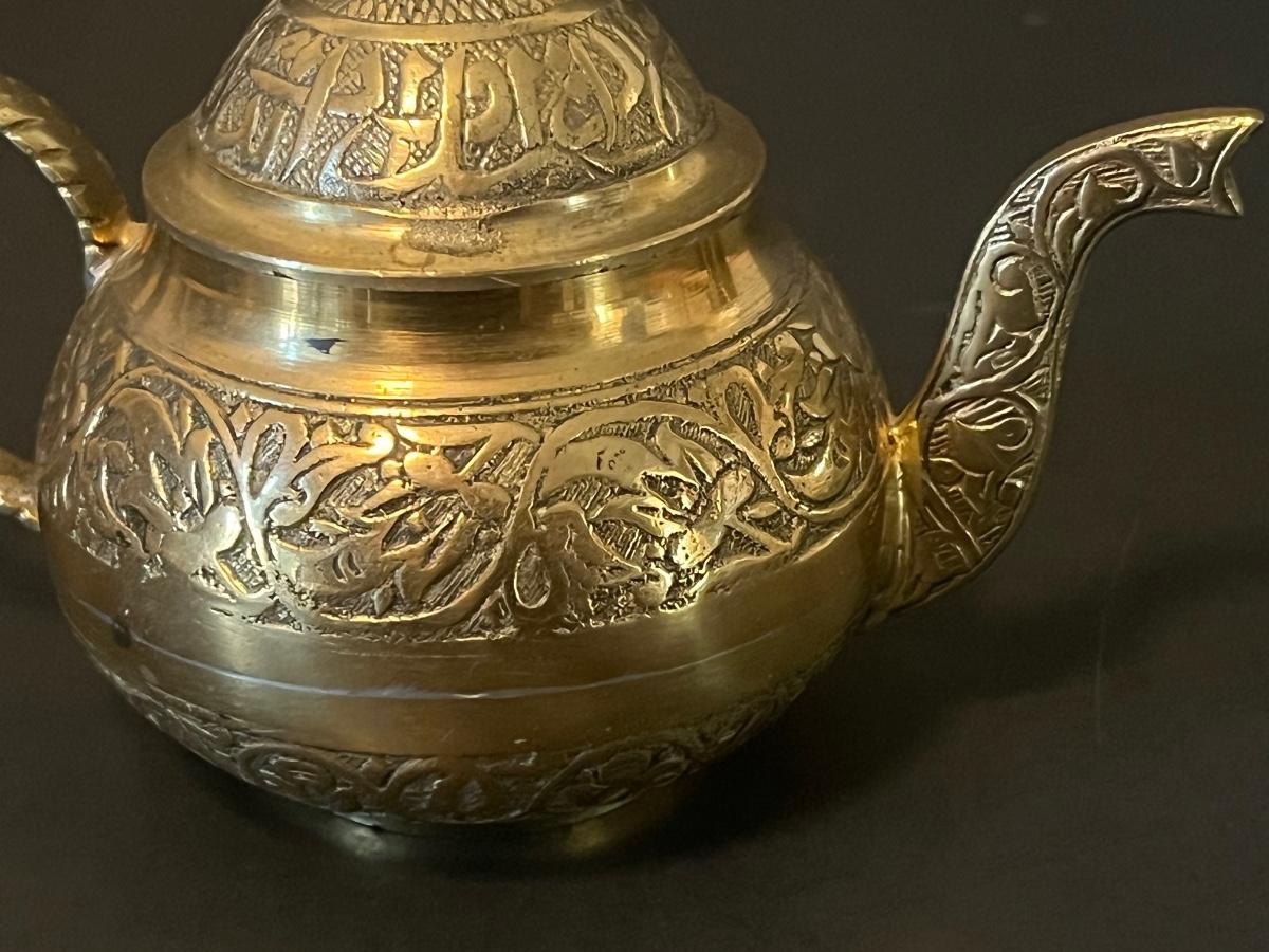 LOT 116: Vintage Brass Tray, Teapot, Coaster, Made in Istanbul