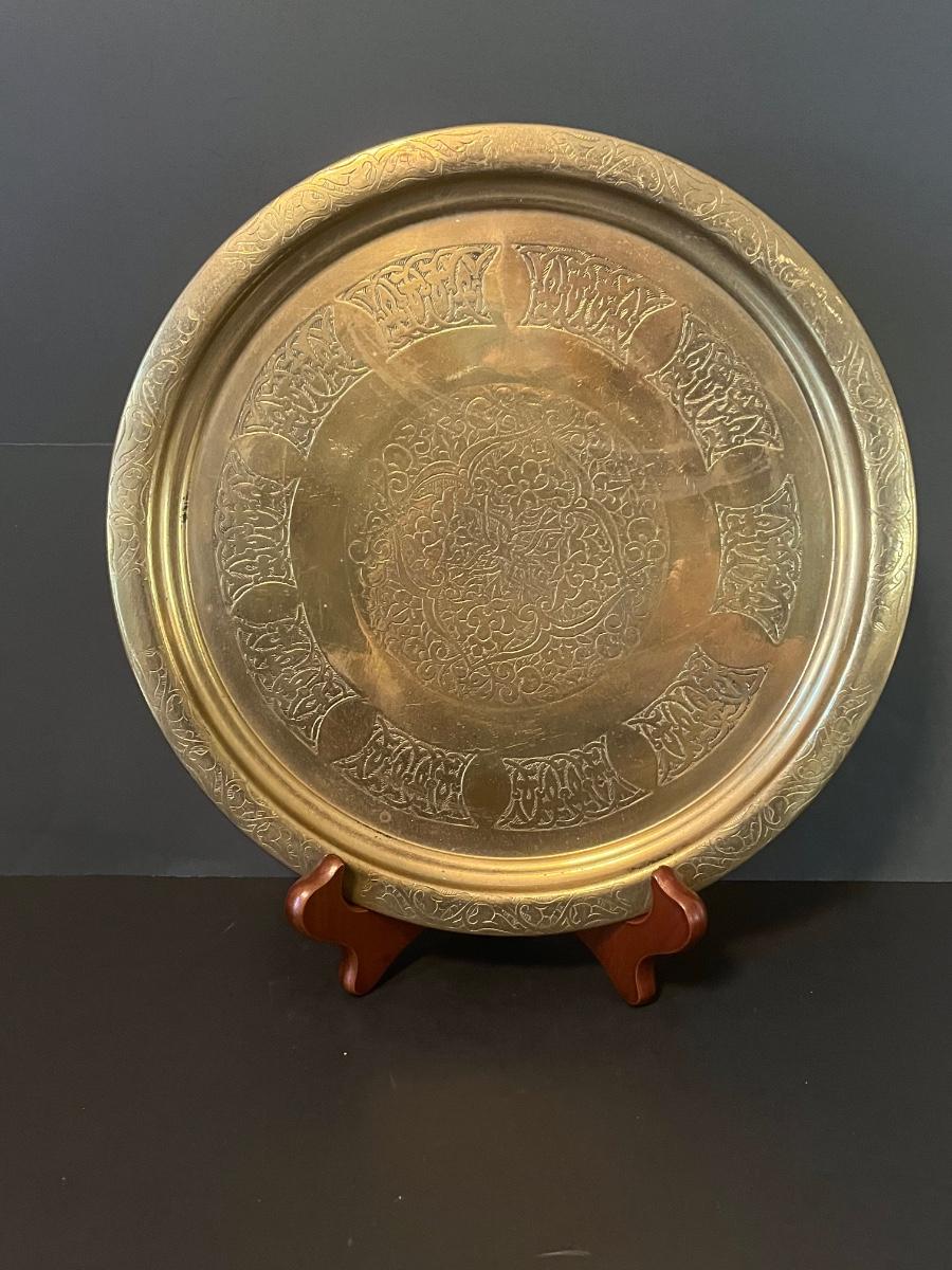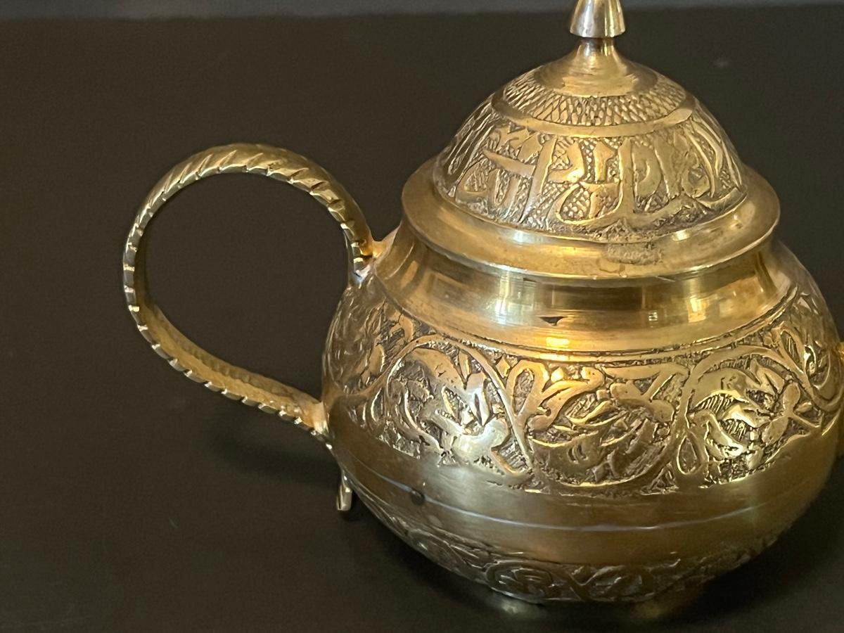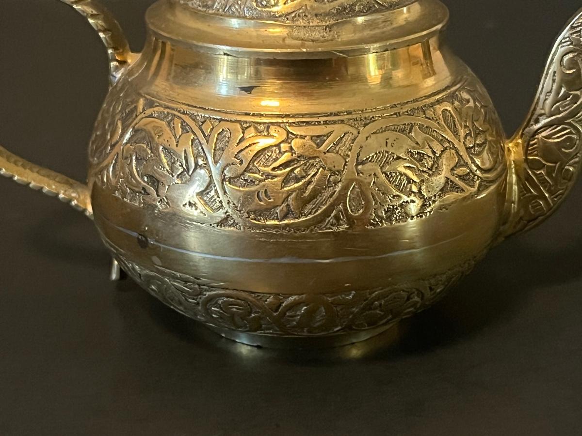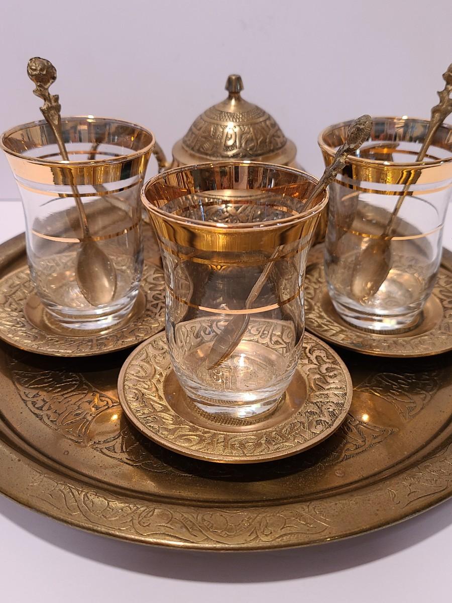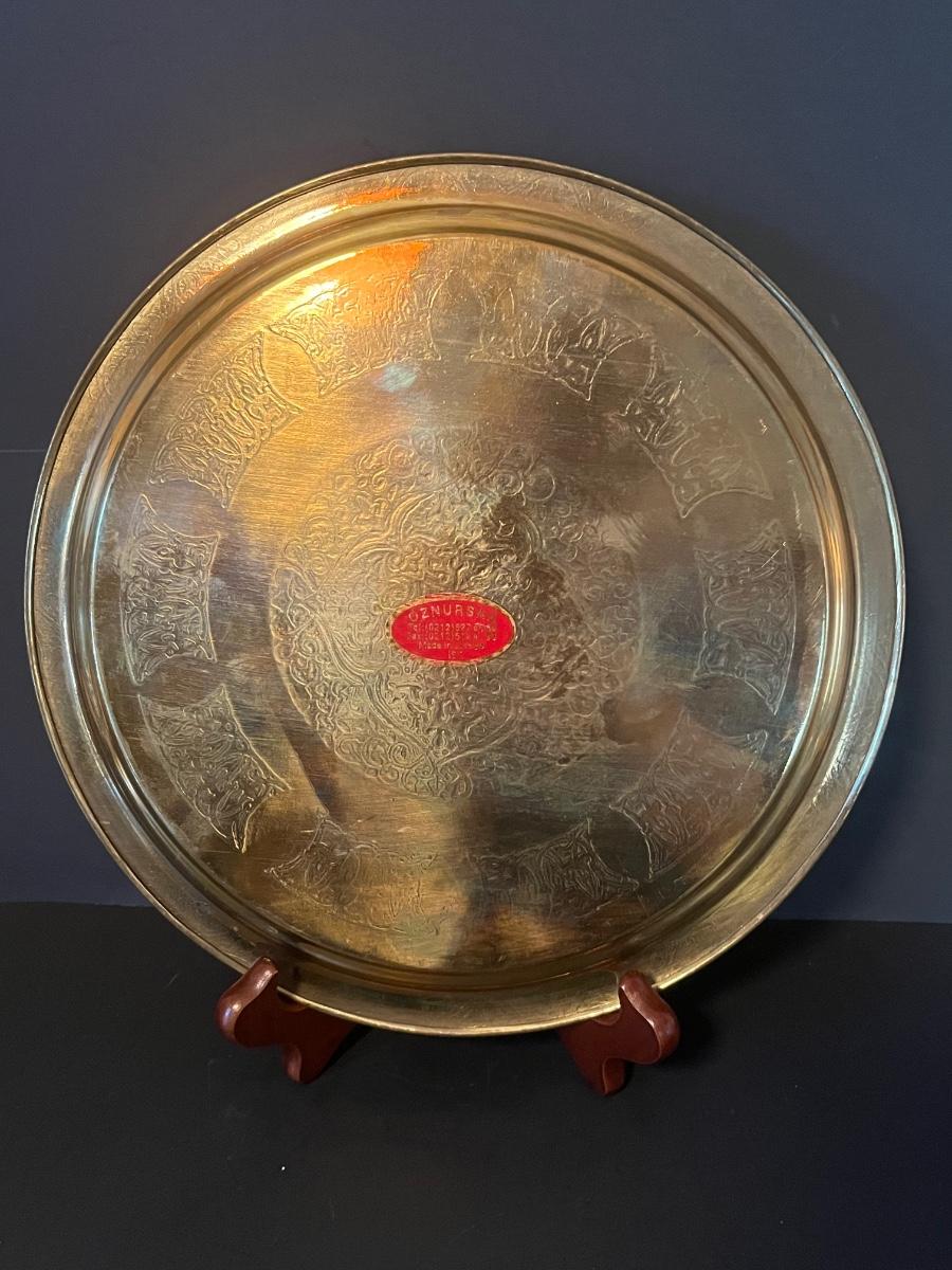LOT 116: Vintage Brass Tray, Teapot, Coaster, Made in Istanbul
