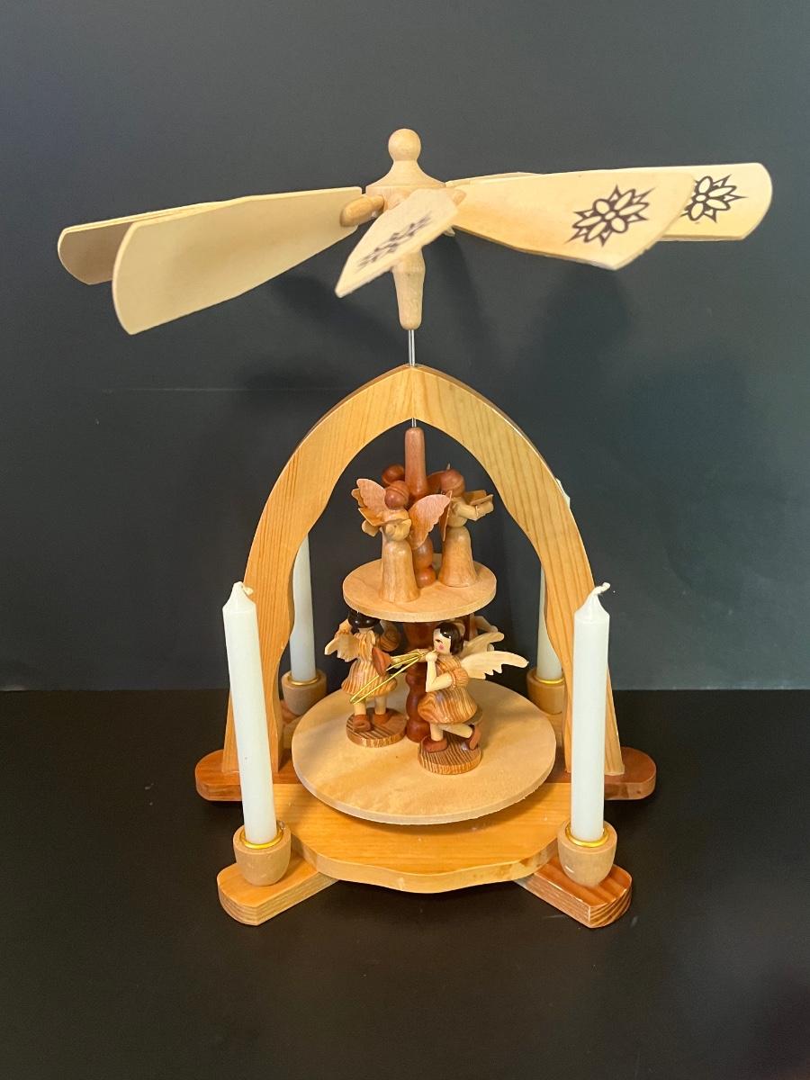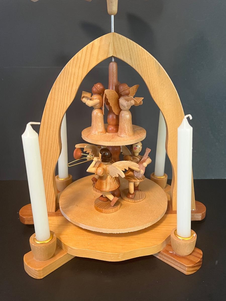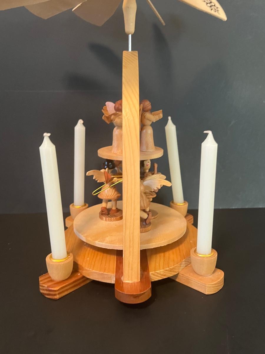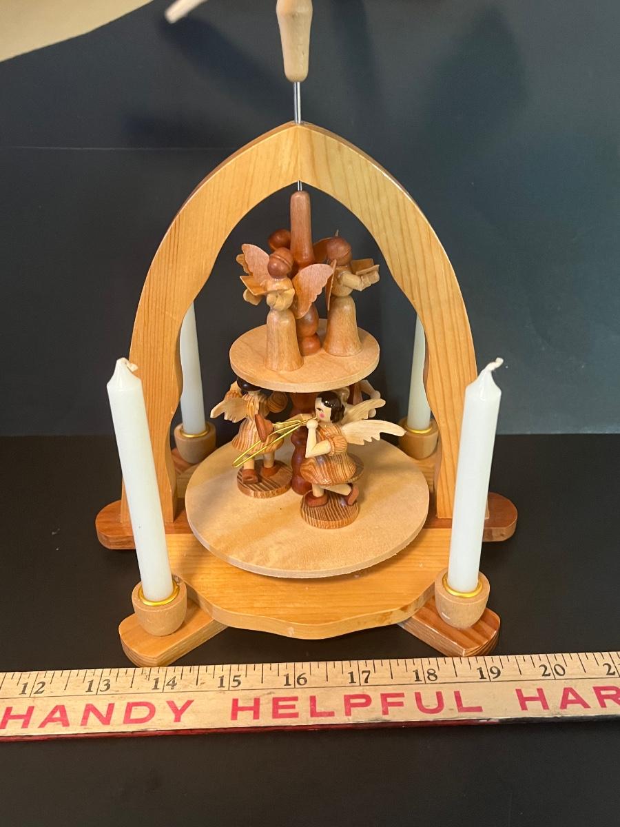 Vintage Wood Christmas Candle Holder Spinning Pyramid/Carousel. Beautiful piece with all of its pieces.