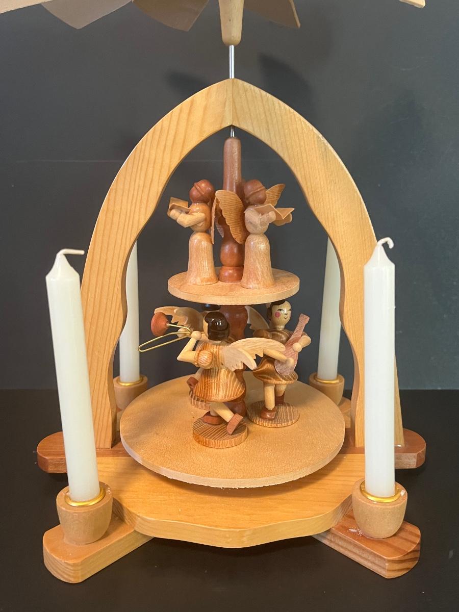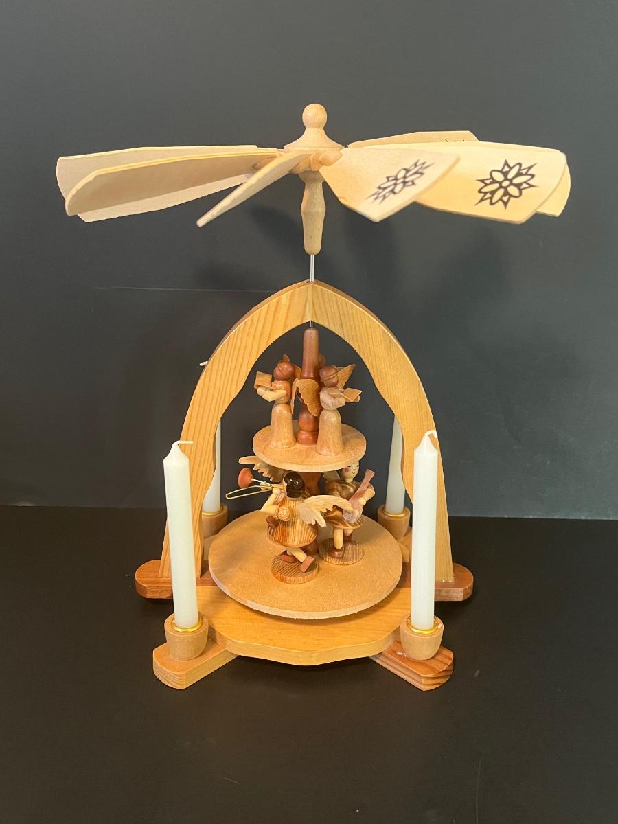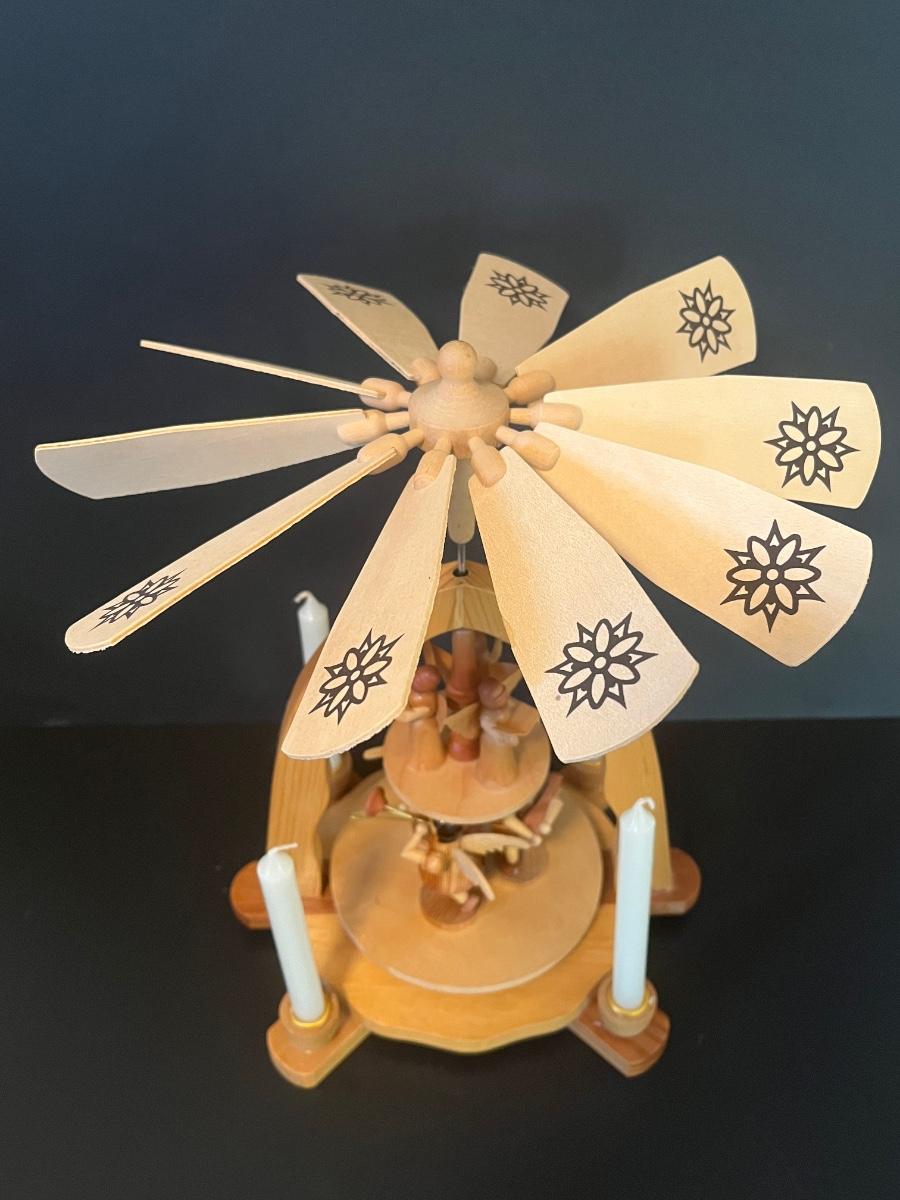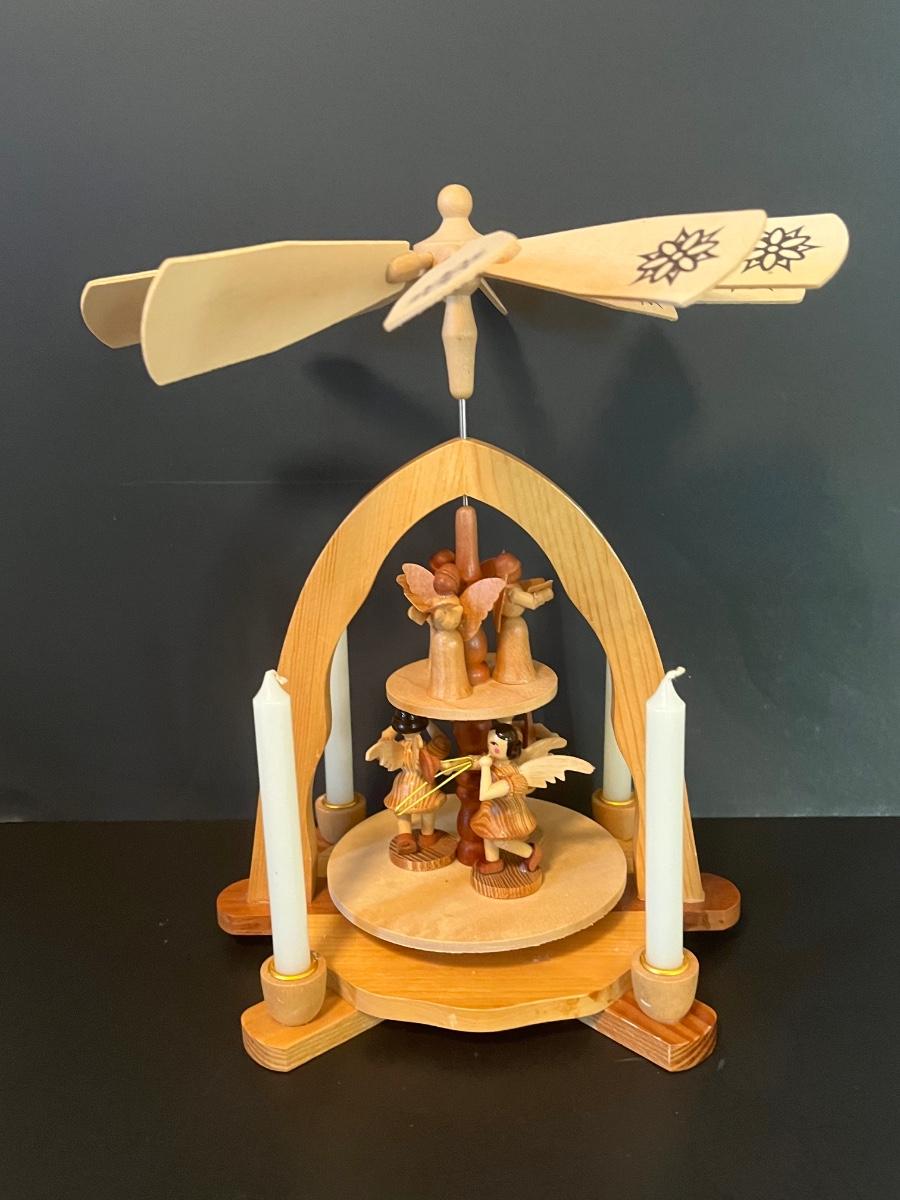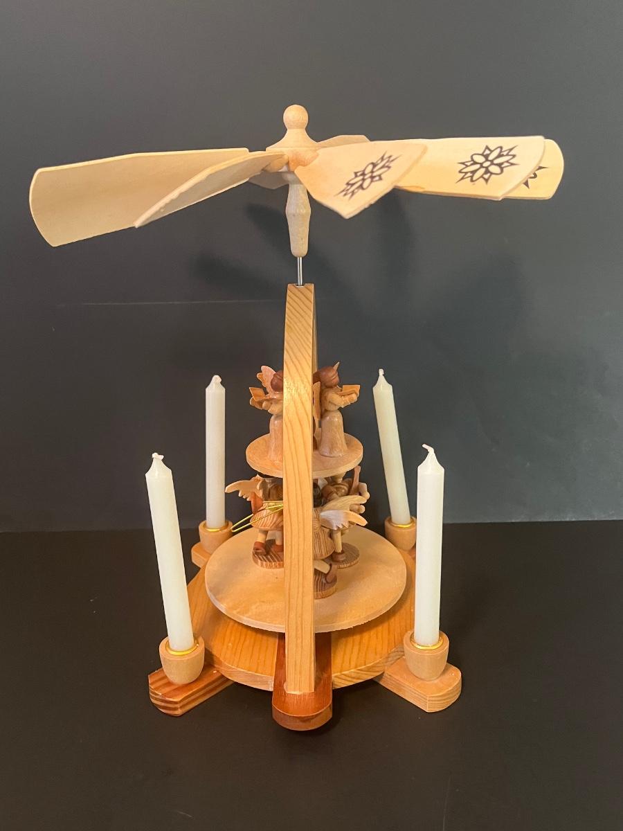 Vintage Wood Christmas Candle Holder Spinning Pyramid/Carousel. Beautiful piece with all of its pieces.