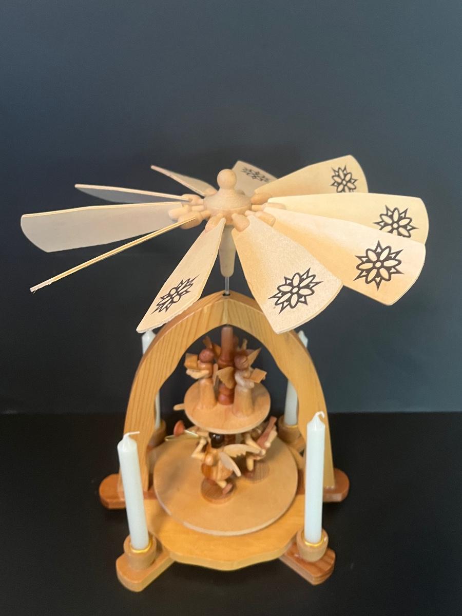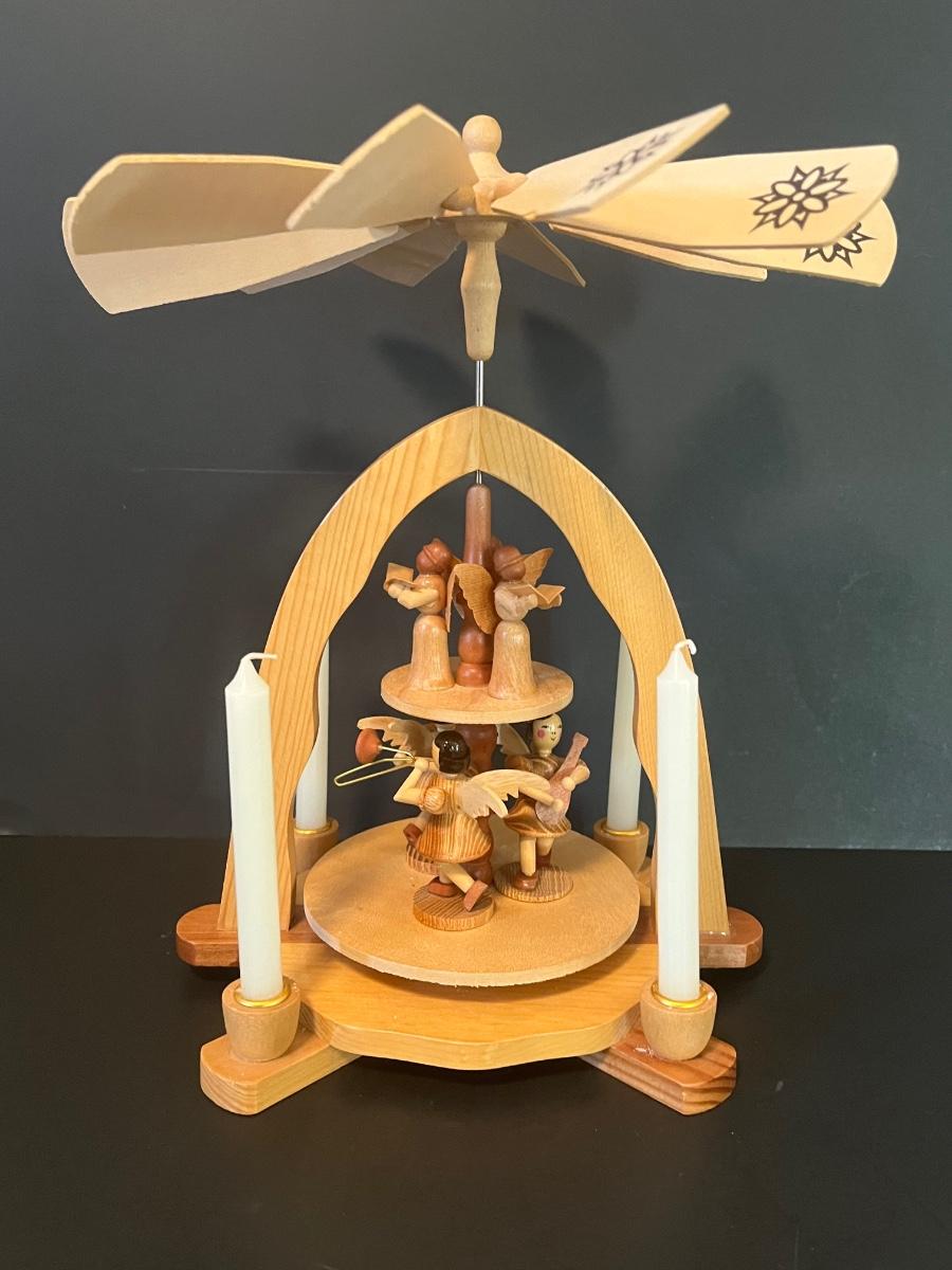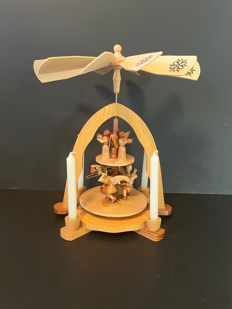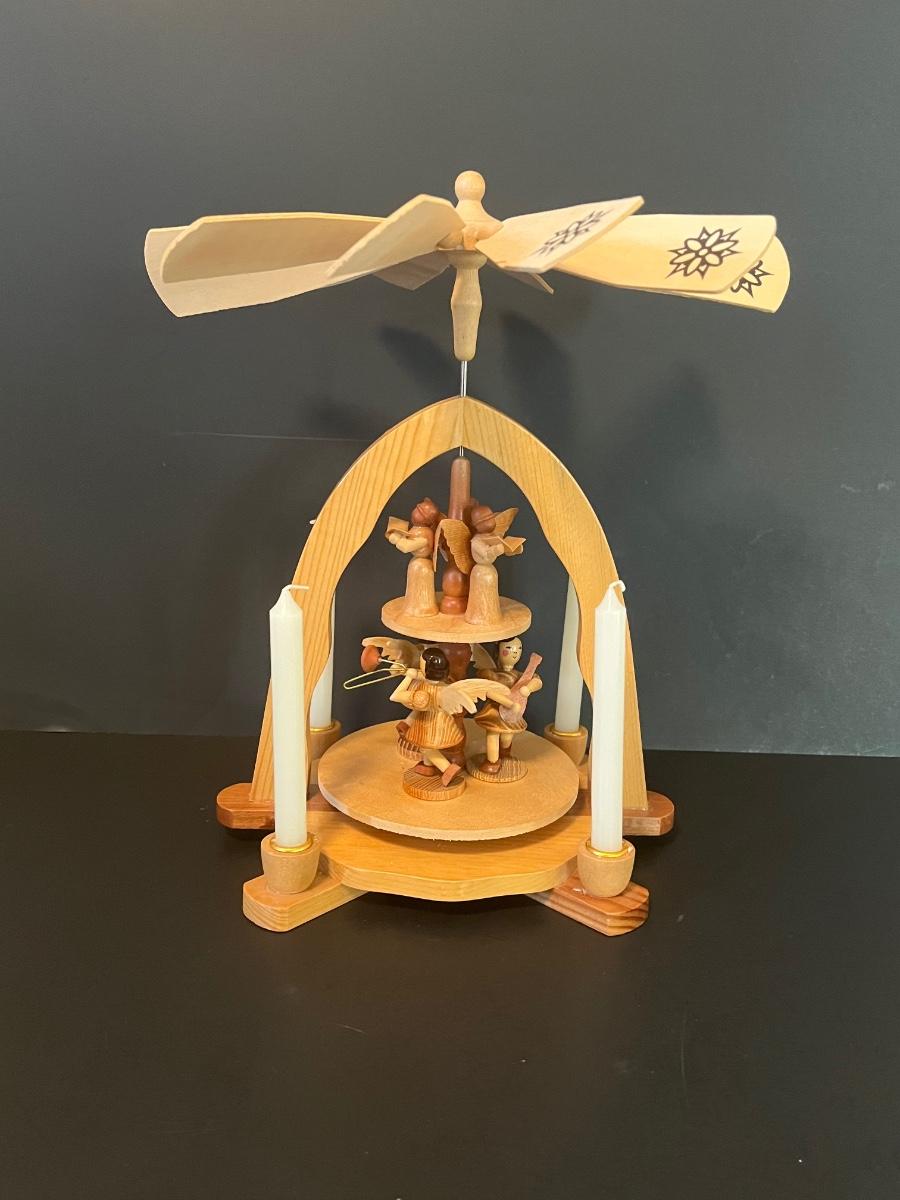 Vintage Wood Christmas Candle Holder Spinning Pyramid/Carousel. Beautiful piece with all of its pieces.